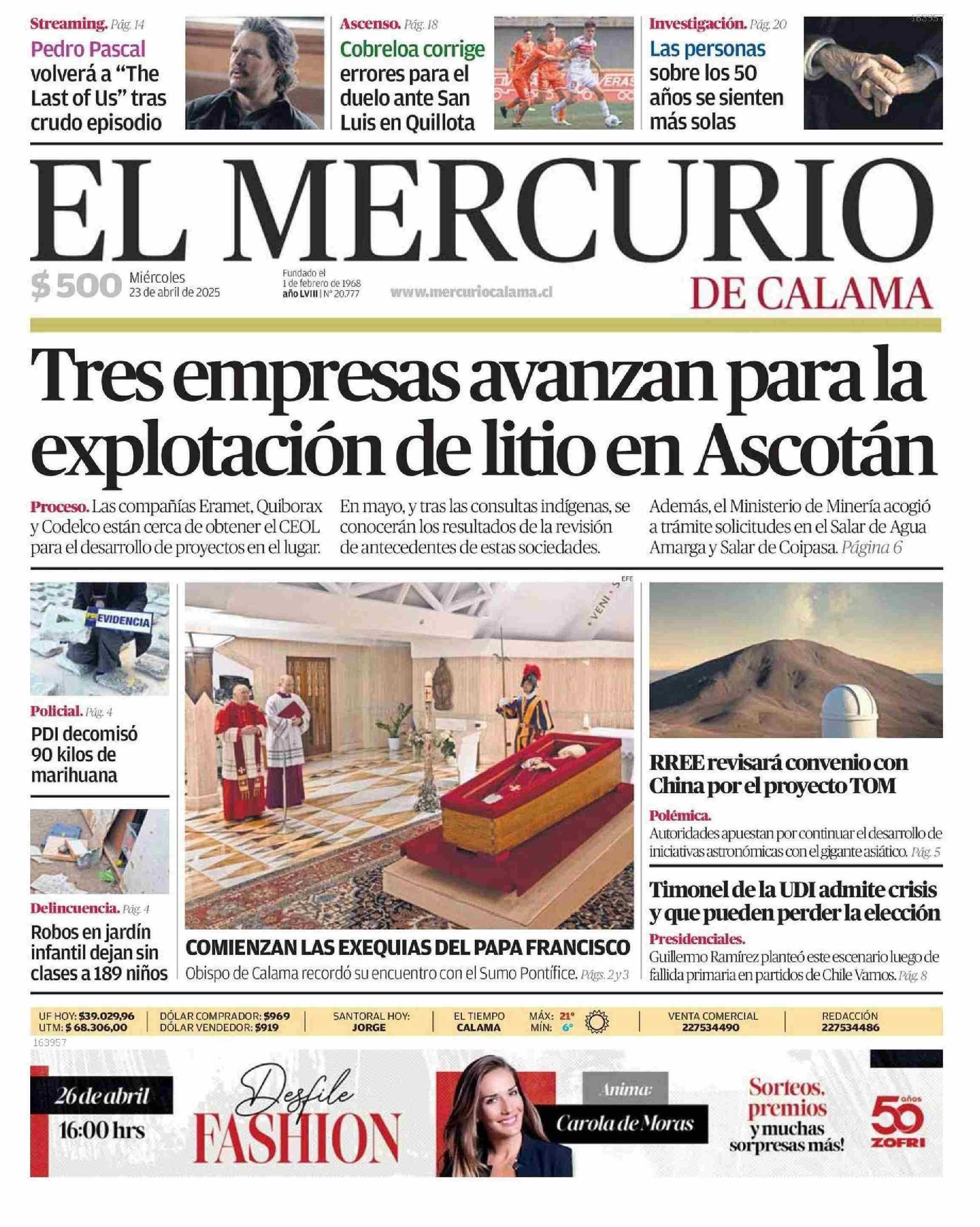 | Fecha: | 23-04-2025 | Sector: | Portada | Región: | Región de Antofagasta |