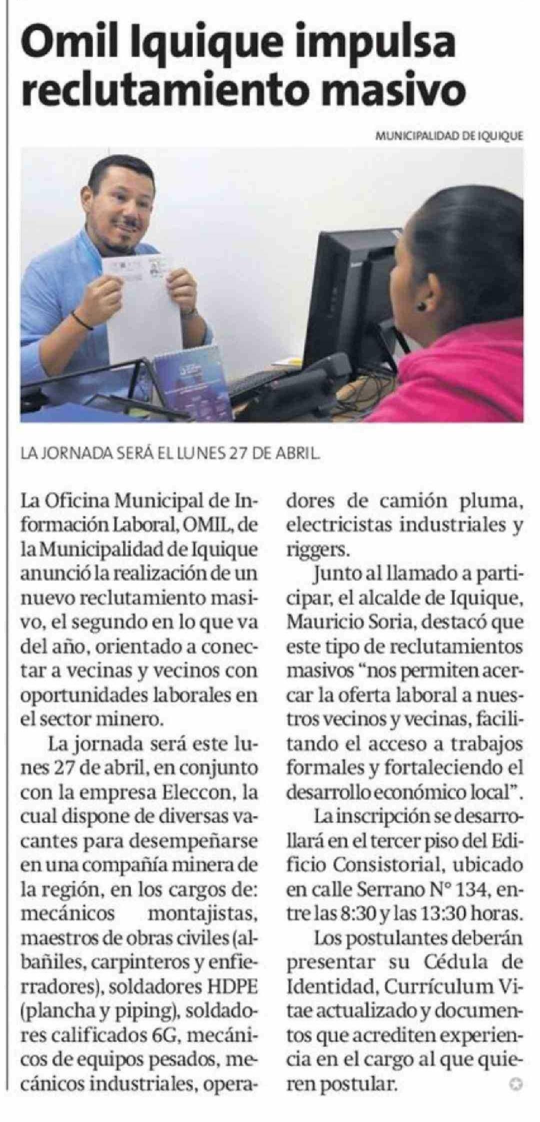 Fecha: 24-04-2026 Sector: Noticia general Región: Región de Tarapacá