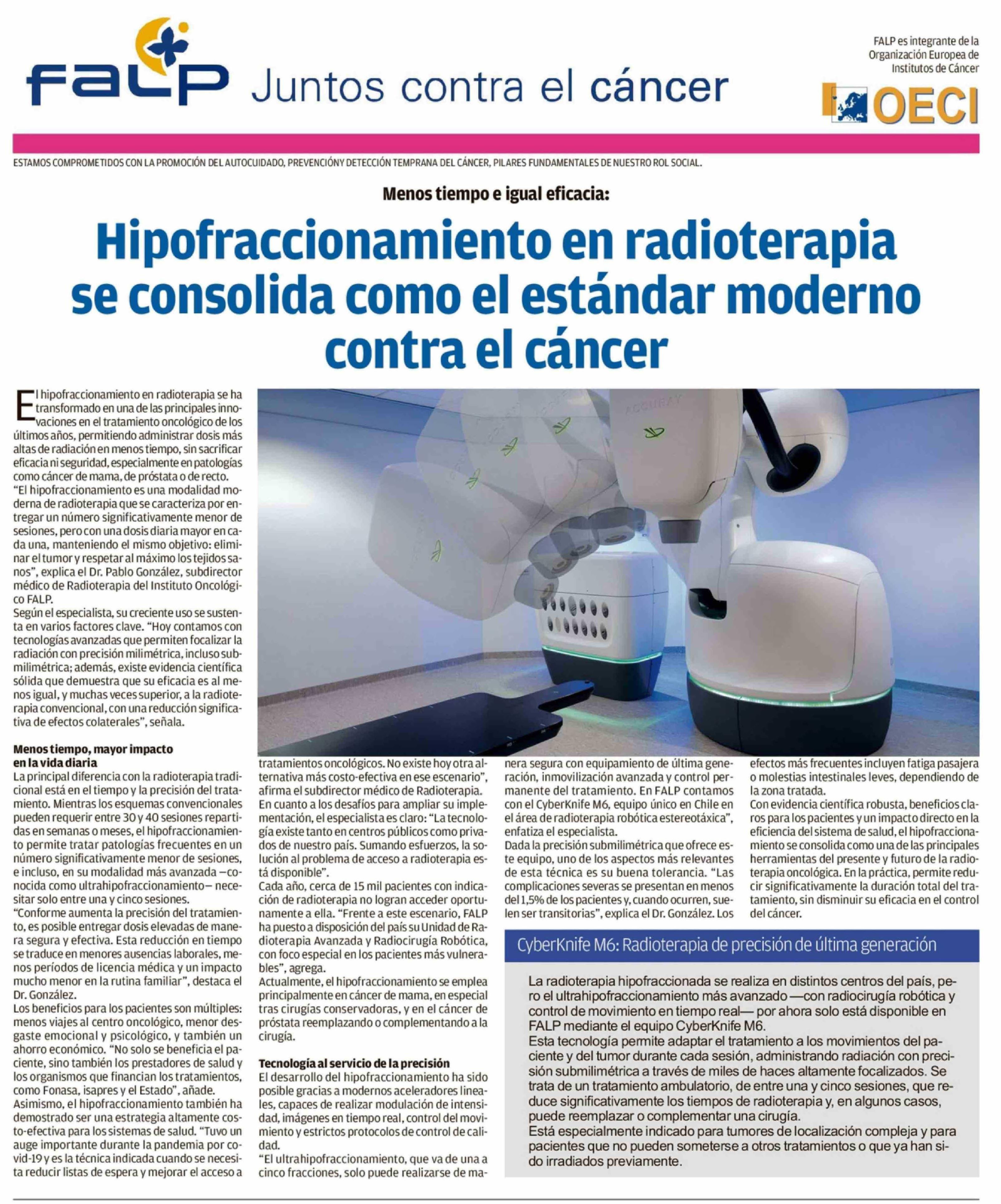 Hipofraccionamiento en radioterapia se consolida como el estándar moderno contra el cáncer 15-02-2026 El Austral de Osorno |