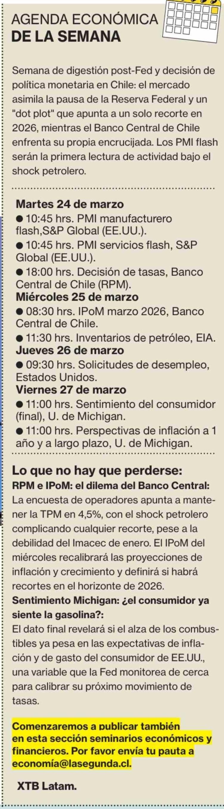 AGENDA ECONÓMICA DE LA SEMANA 23-03-2026 La Segunda |
