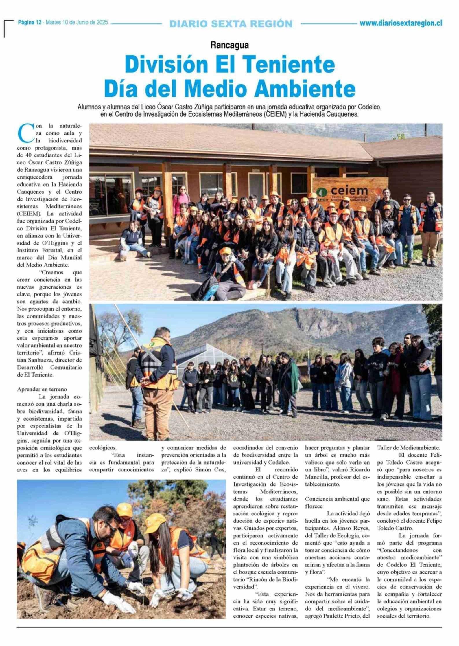 División El Teniente Dia del Medio Ambiente 10-06-2025 Diario VI Región |