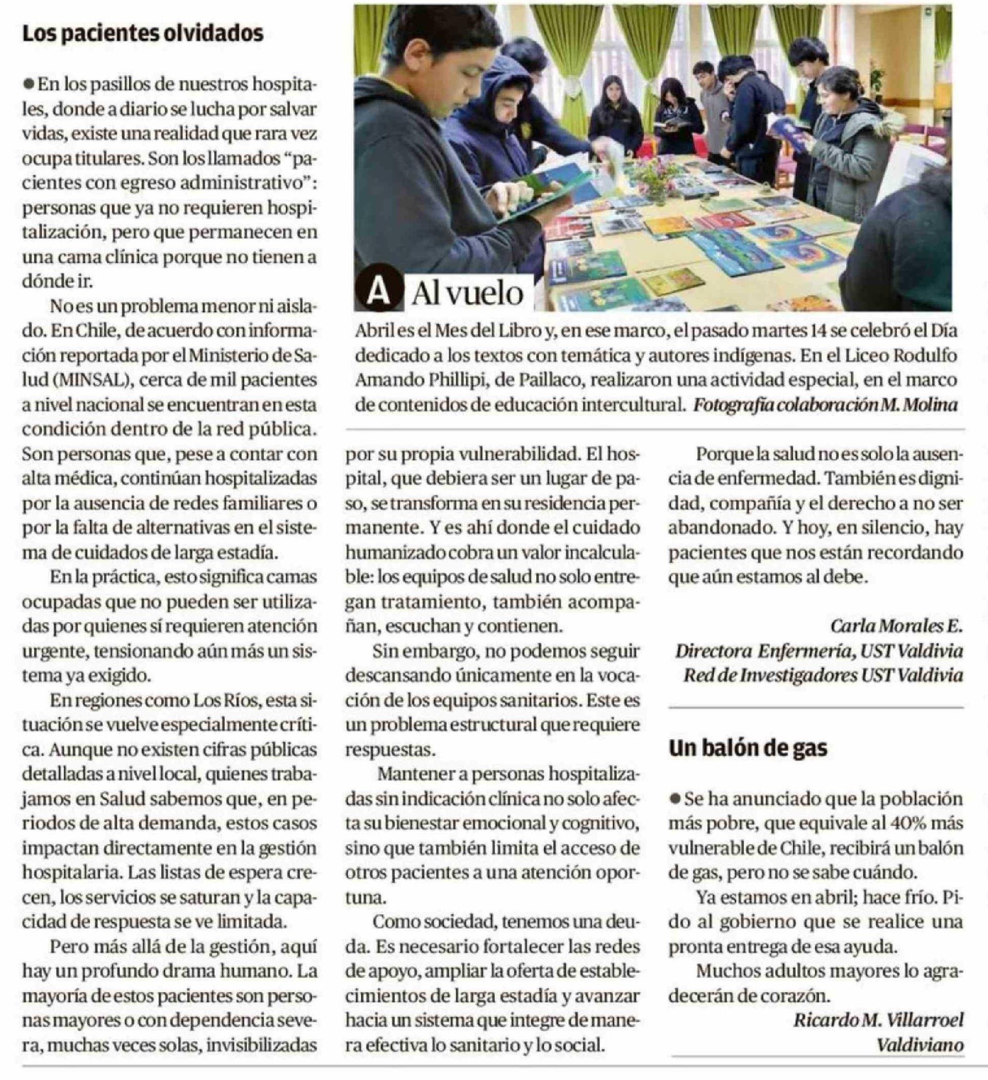 Cartas: Los pacientes olvidados 21-04-2026 Diario Austral Región de Los Ríos |