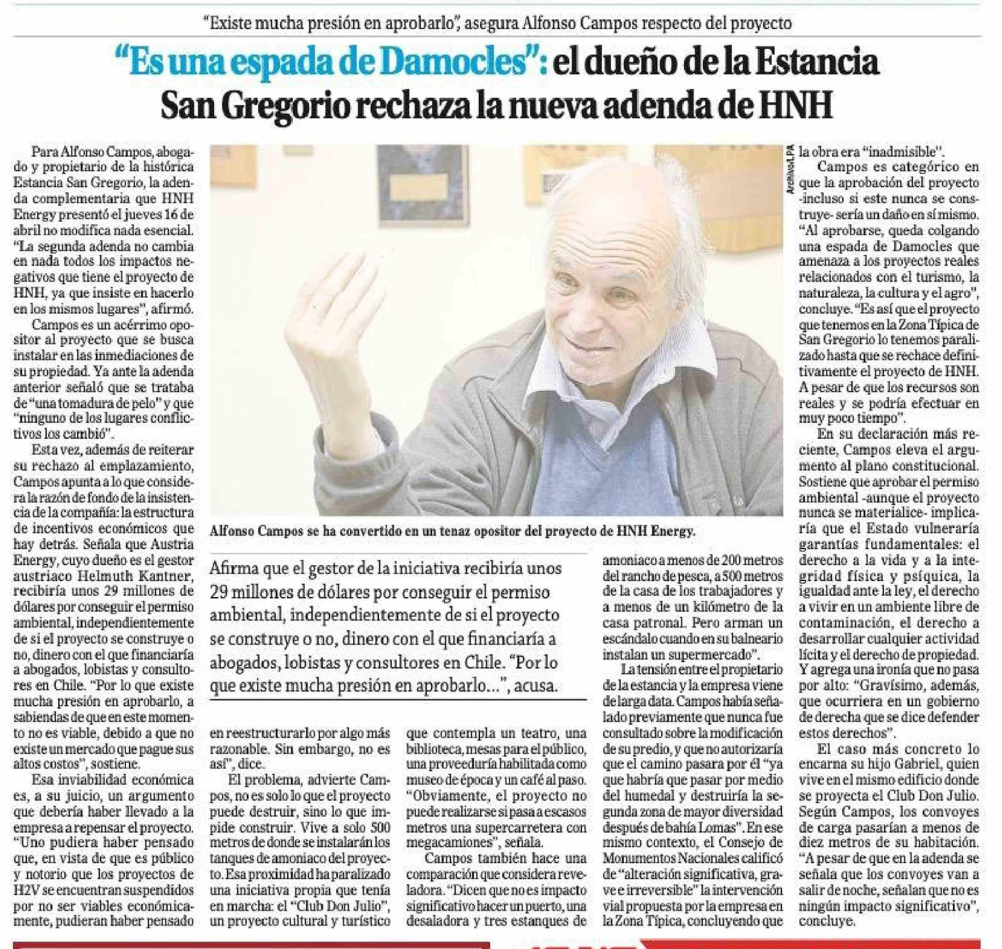 | Título: | "Es una espada de Damocles": el dueño de la Estancia San Gregorio rechaza la nueva adenda de HNH |