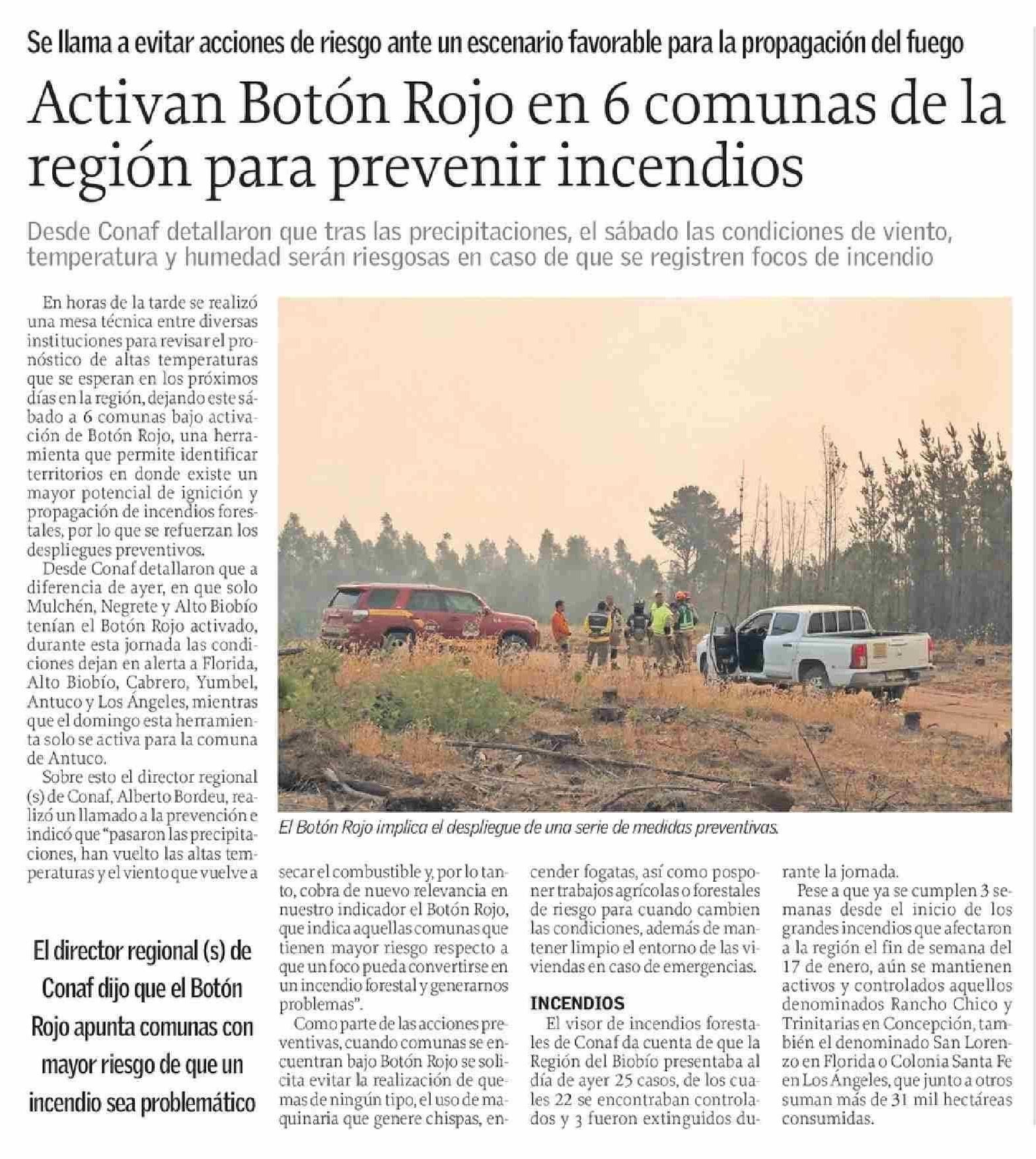 Título: Activan Botón Rojo en 6 comunas de la región para prevenir incendios