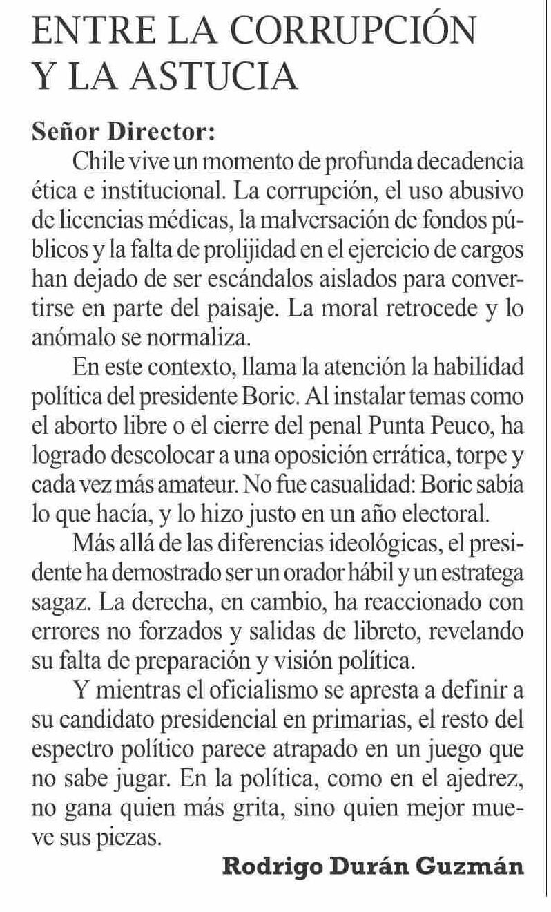 CARTAS: ENTRE LA CORRUPCIÓN Y LA ASTUCIA 05-06-2025 El Pingüino |