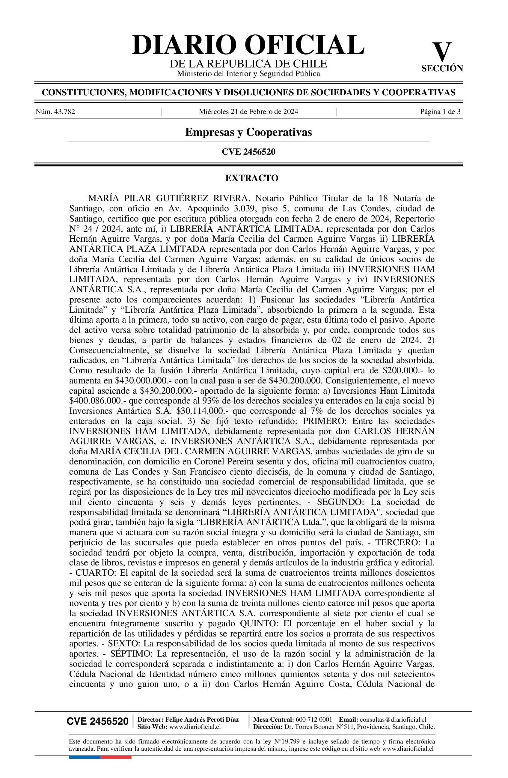 Extracto 21-02-2024 Diario Oficial Edición Electrónica |