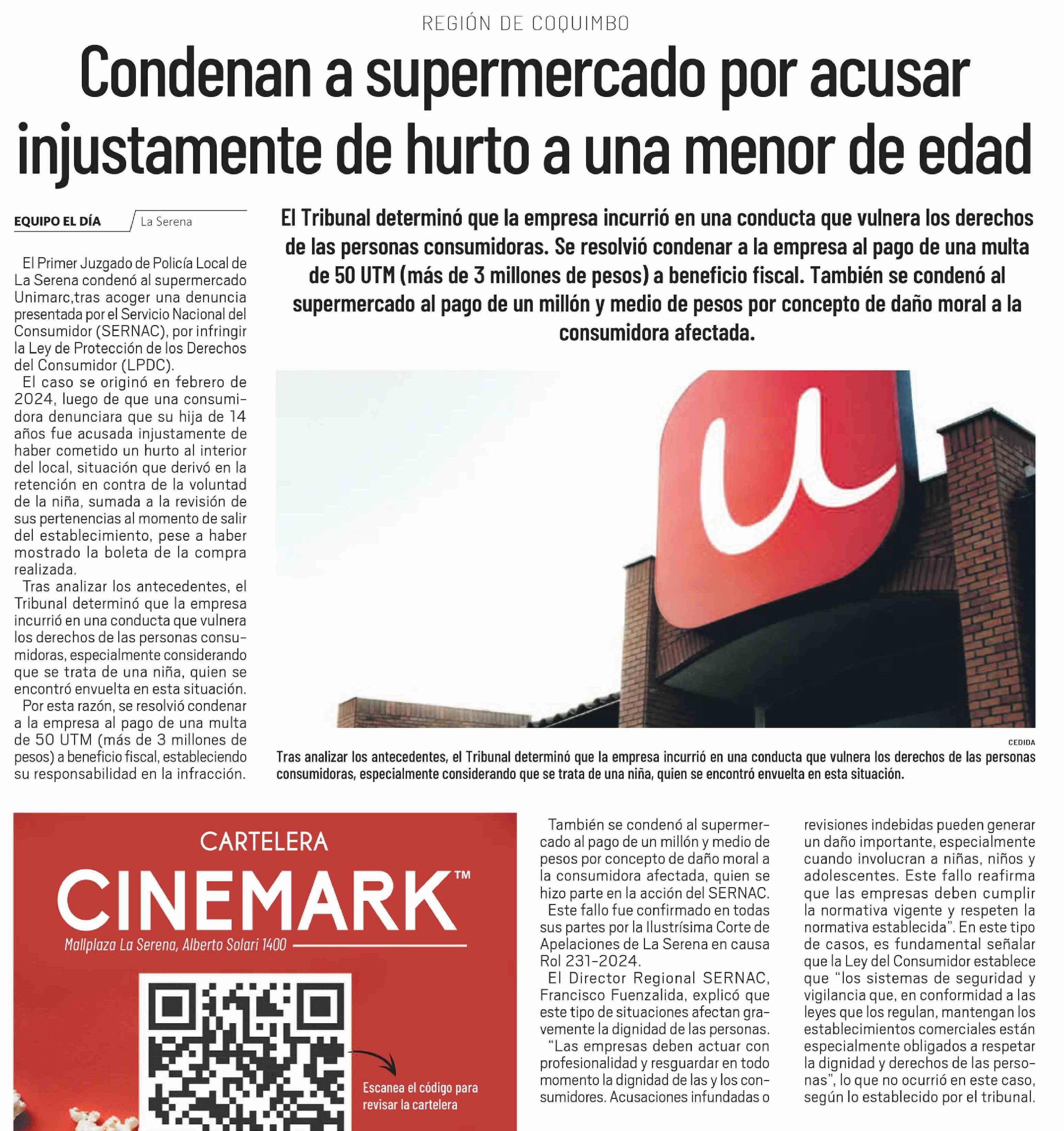 Título: Condenan a supermercado por acusar injustamente de hurto a una menor de edad