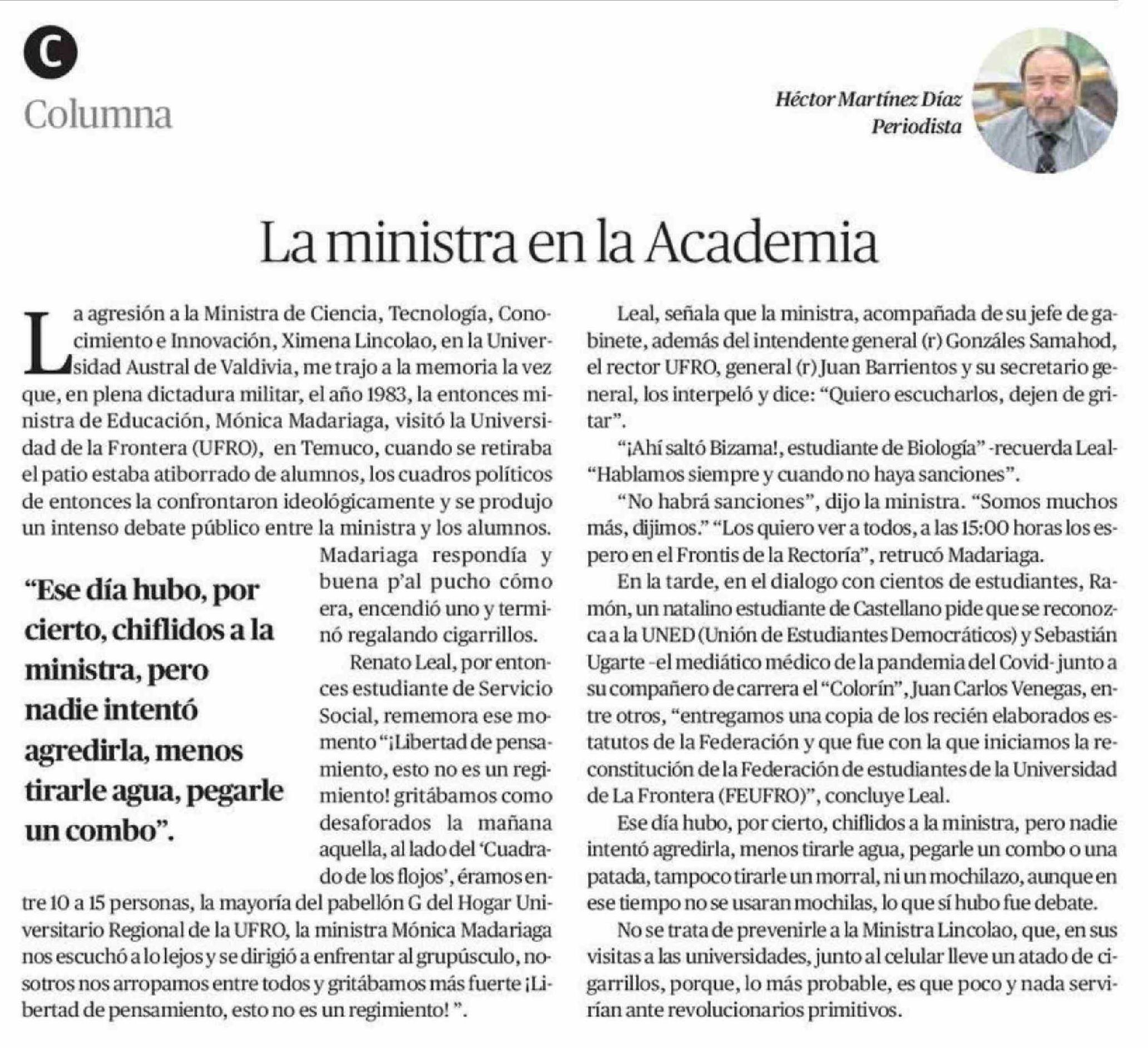 Columnas de Opinión: La ministra en la Academia 17-04-2026 El Mercurio de Calama |