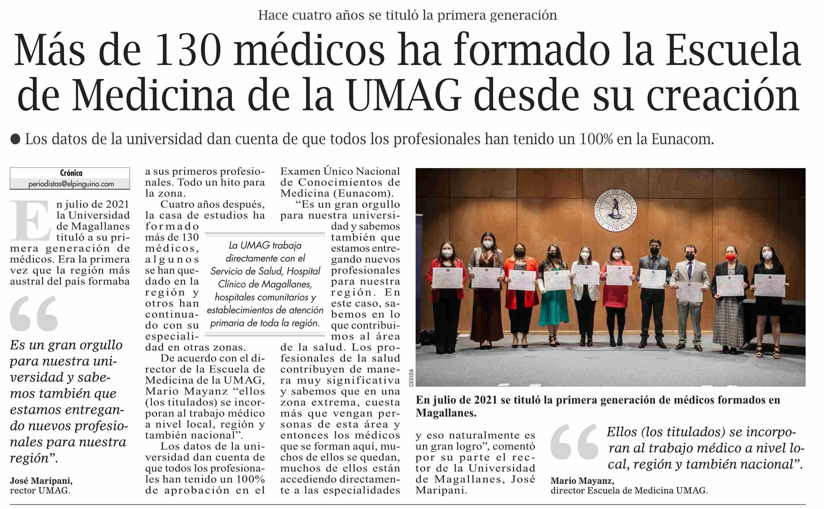 Más de 130 médicos ha formado la Escuela de Medicina de la UMAG desde su creación 13-06-2025 El Pingüino |