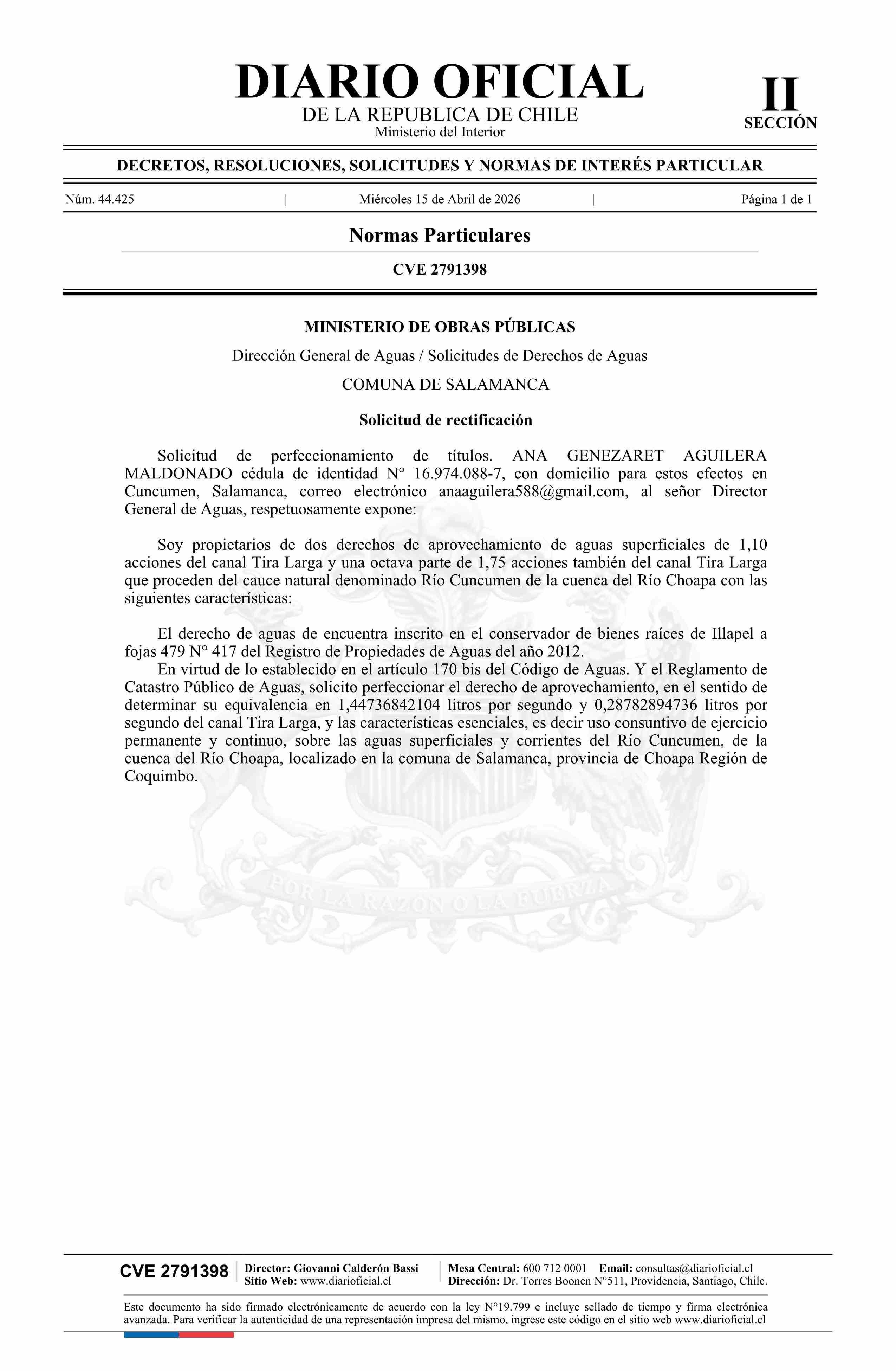 Solicitud Aguilera Maldonado Ana Genezaret 15-04-2026 Diario Oficial Edición Electrónica |