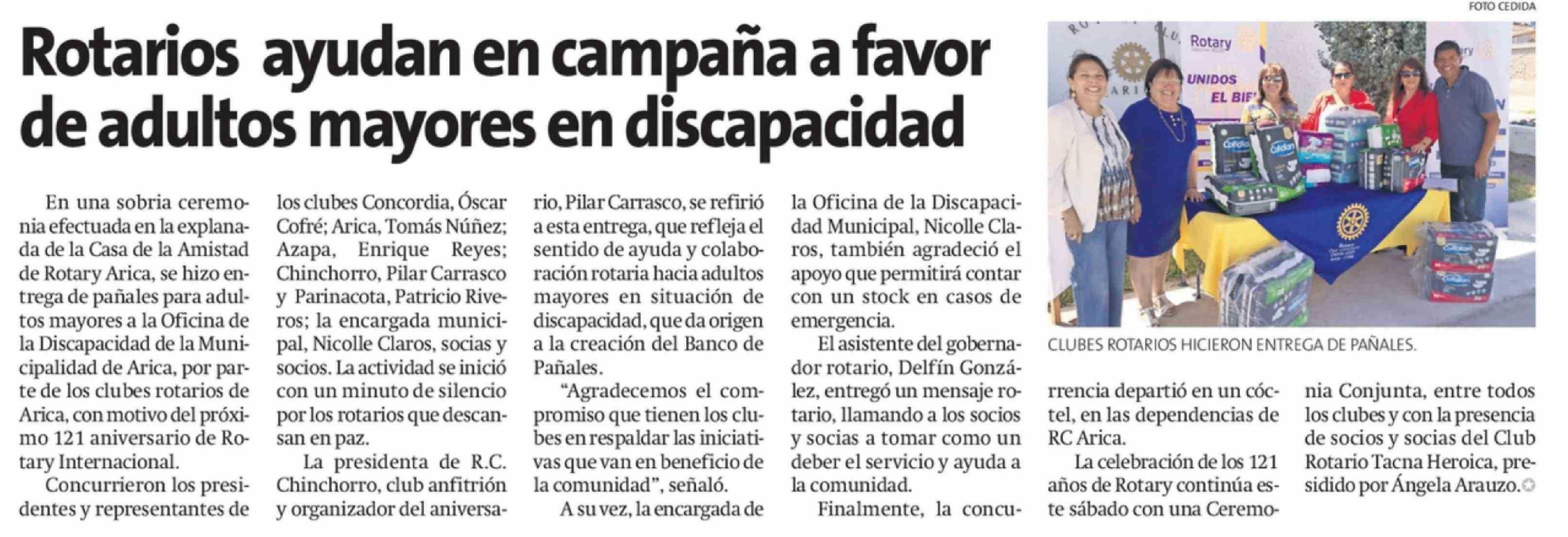 Rotarios ayudan en campaña a favor de adultos mayores en discapacidad 21-02-2026 La Estrella de Arica |