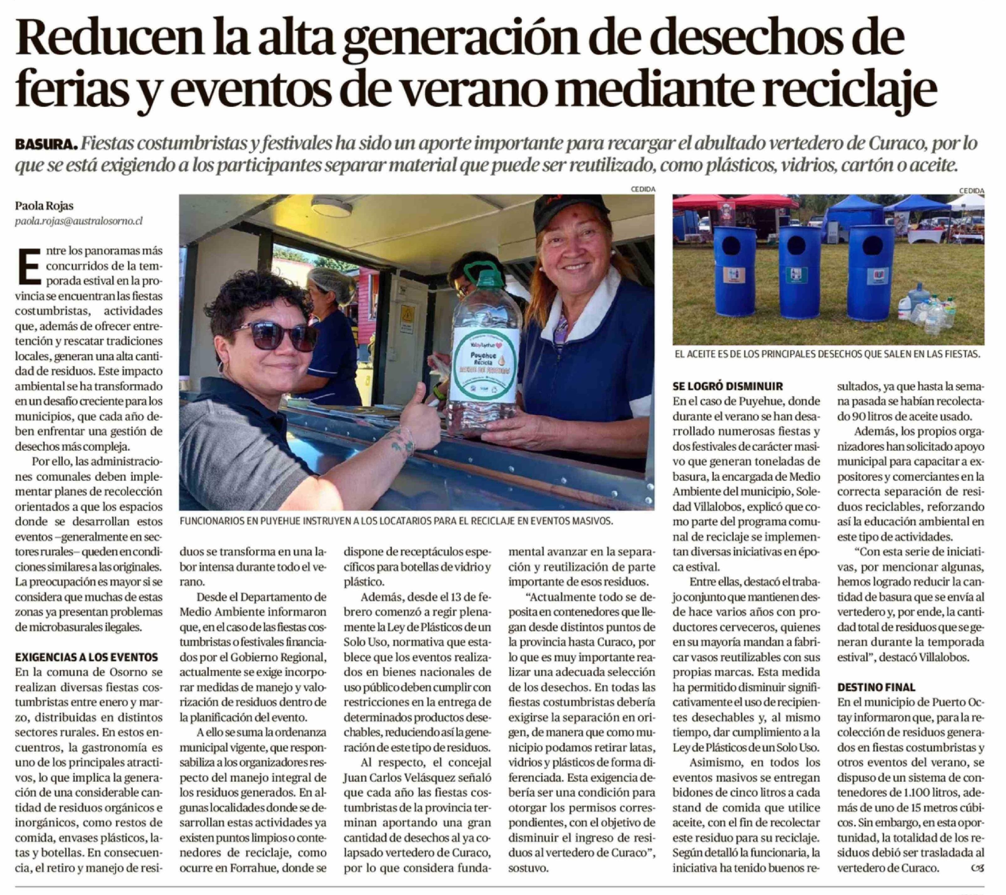 Título: Reducen la alta generación de desechos de ferias y eventos de verano mediante reciclaje