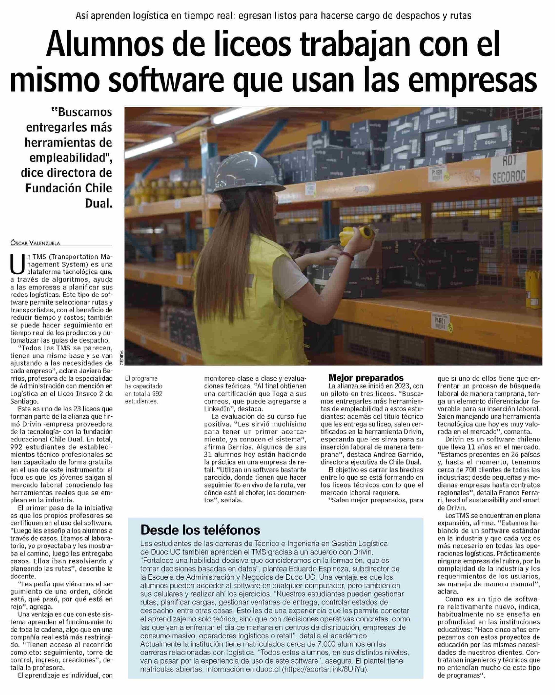 Alumnos de liceos trabajan con el mismo software que usan las empresas 27-01-2026 Las Últimas Noticias |