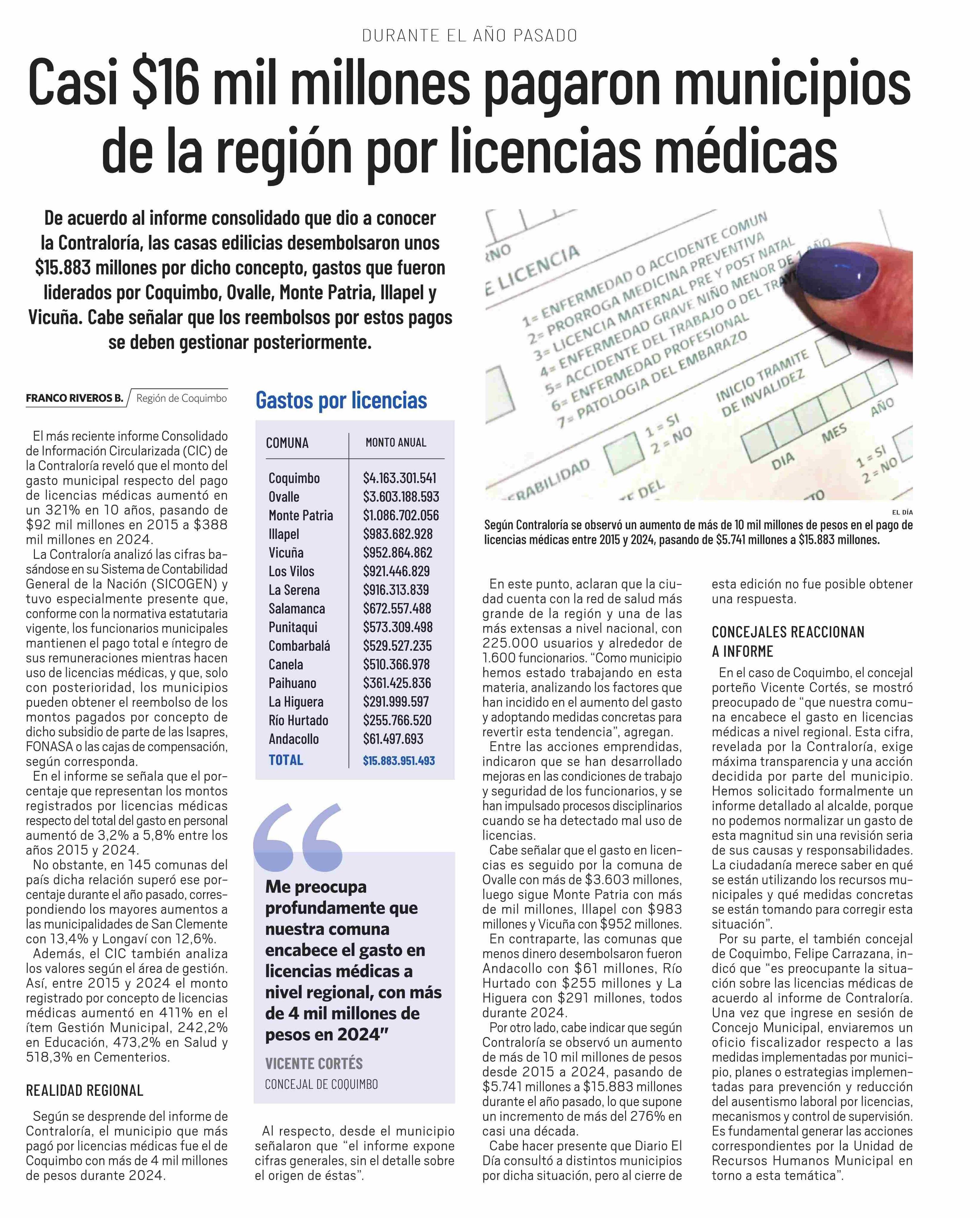 Casi $16 mil millones pagaron municipios de la región por licencias médicas 26-06-2025 El Día |