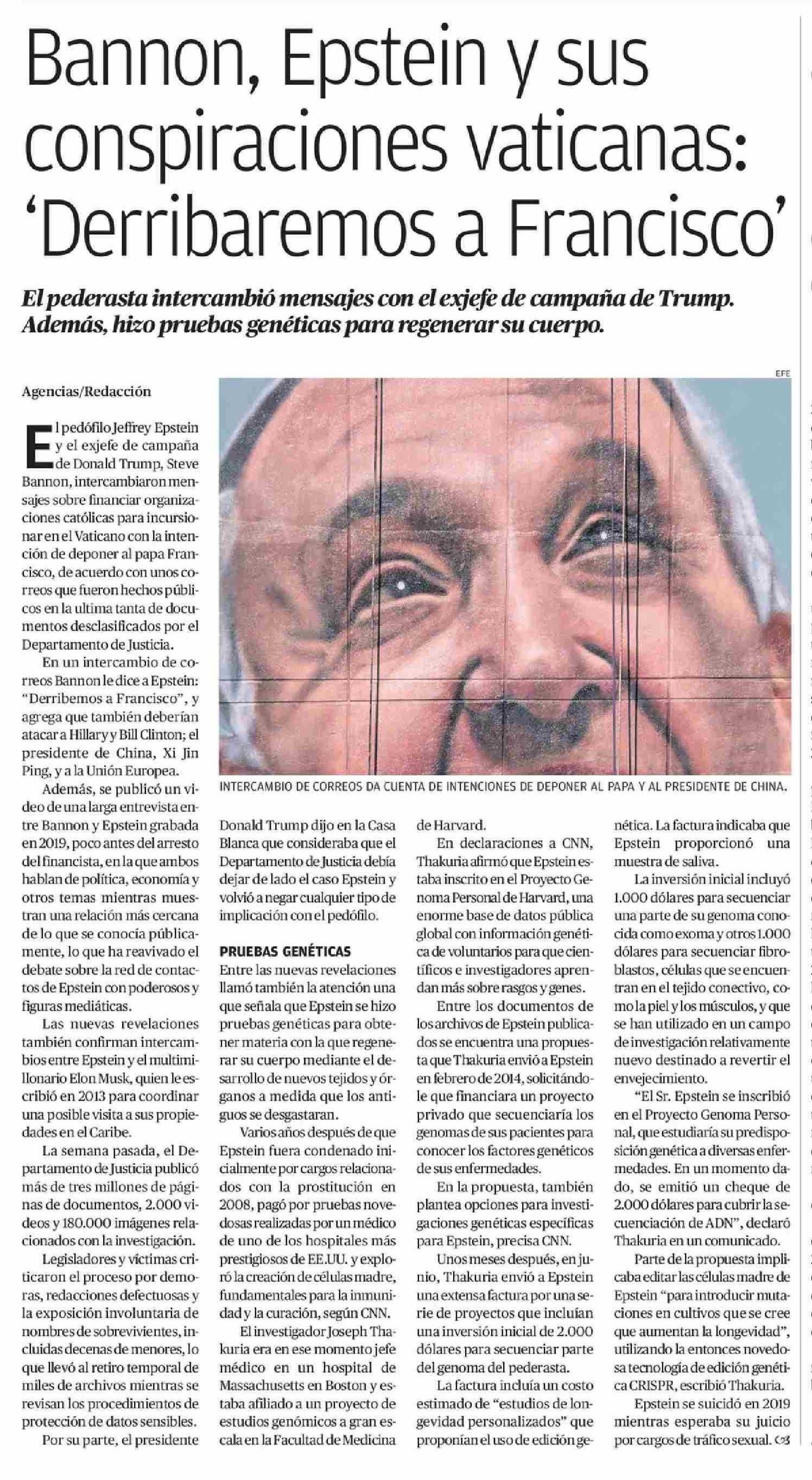 Título: Bannon, Epstein y sus conspiraciones vaticanas: 'Derribaremos a Francisco'