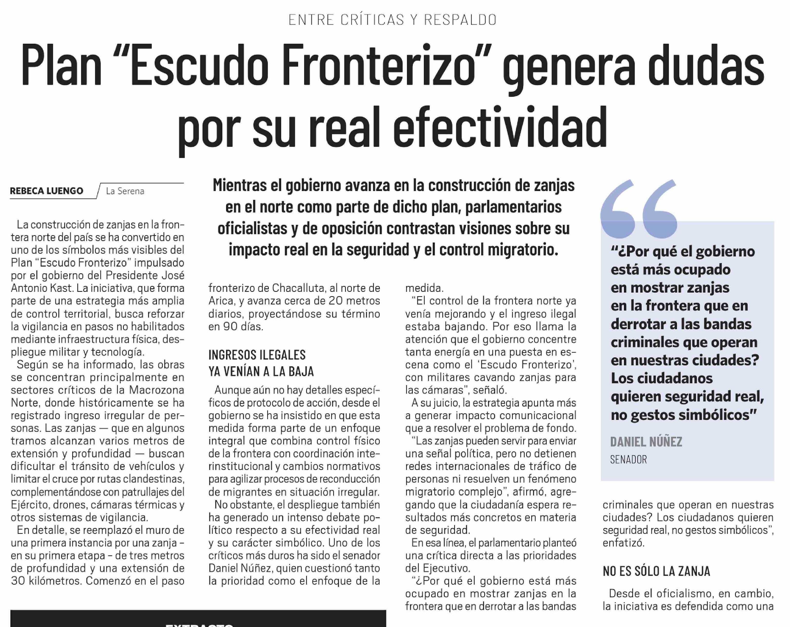Plan "Escudo Fronterizo" genera dudas por su real efectividad 24-03-2026 El Día |