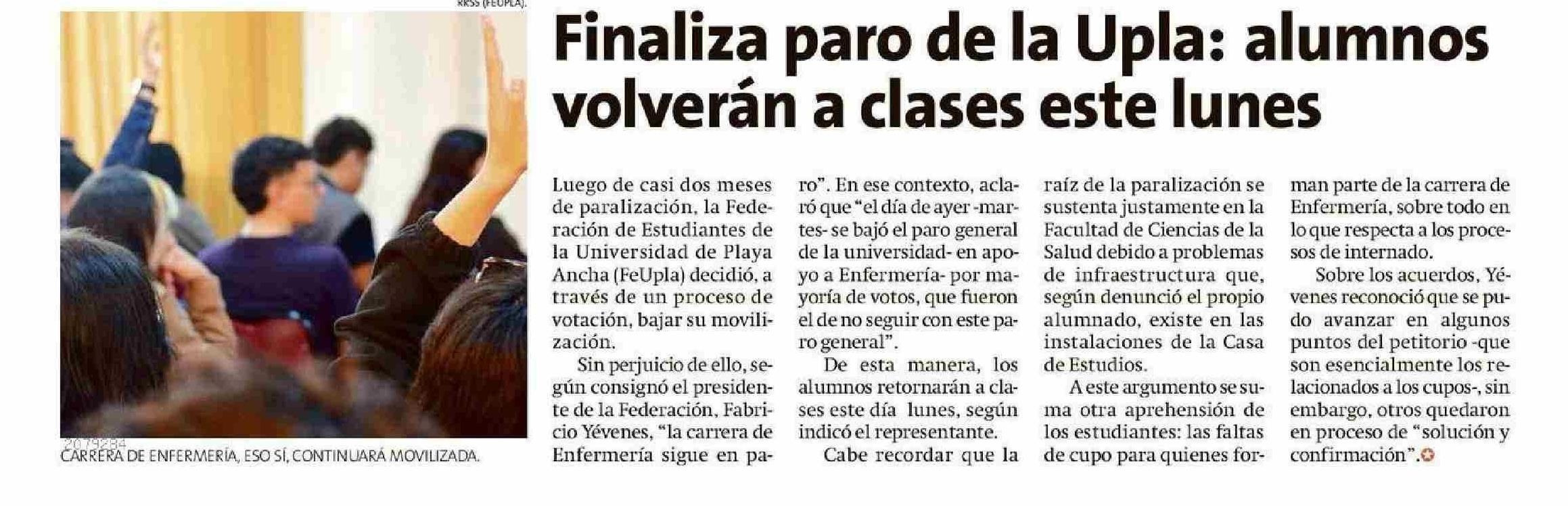 | Título: | Finaliza paro de la Upla: alumnos volverán a clases este lunes |