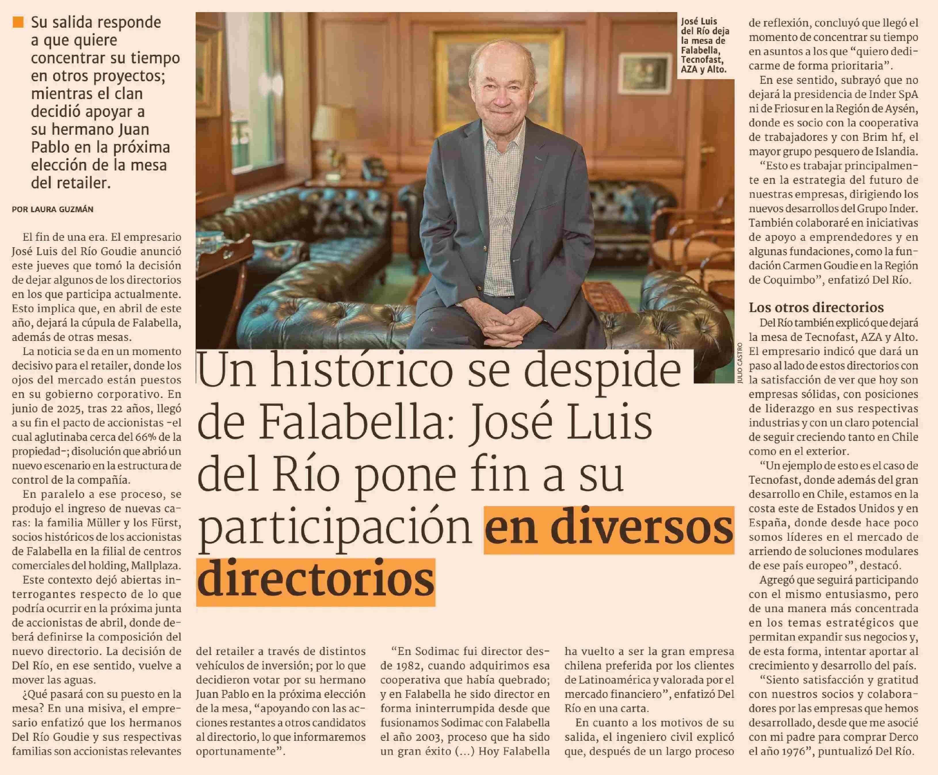 Título: Un histórico se despide de Falabella: José Luis del Río pone fin a su participación en diversos directorios
