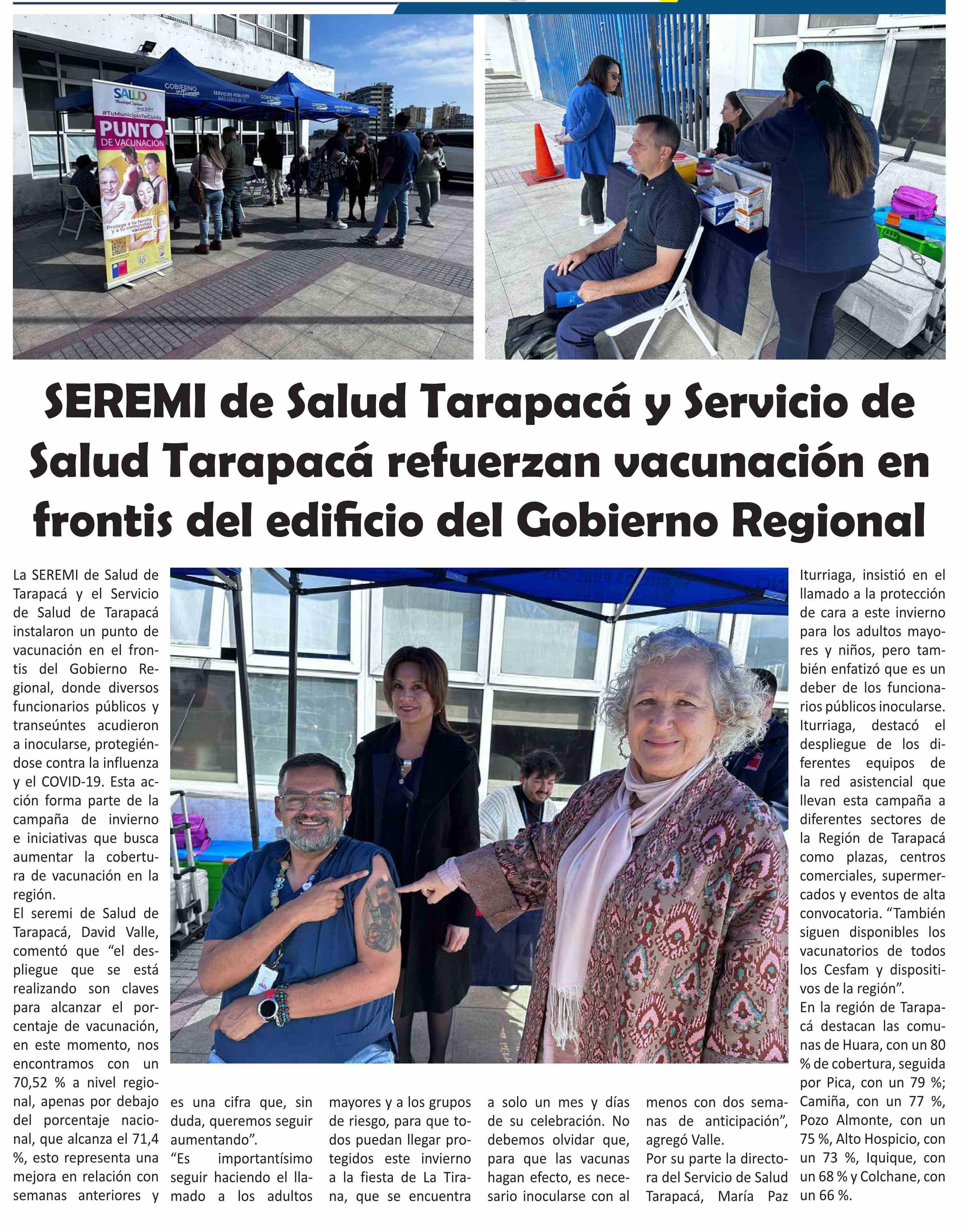 Título: SEREMI de Salud Tarapacá y Servicio de Salud Tarapacá refuerzan vacunación en frontis del edificio del Gobierno Regional