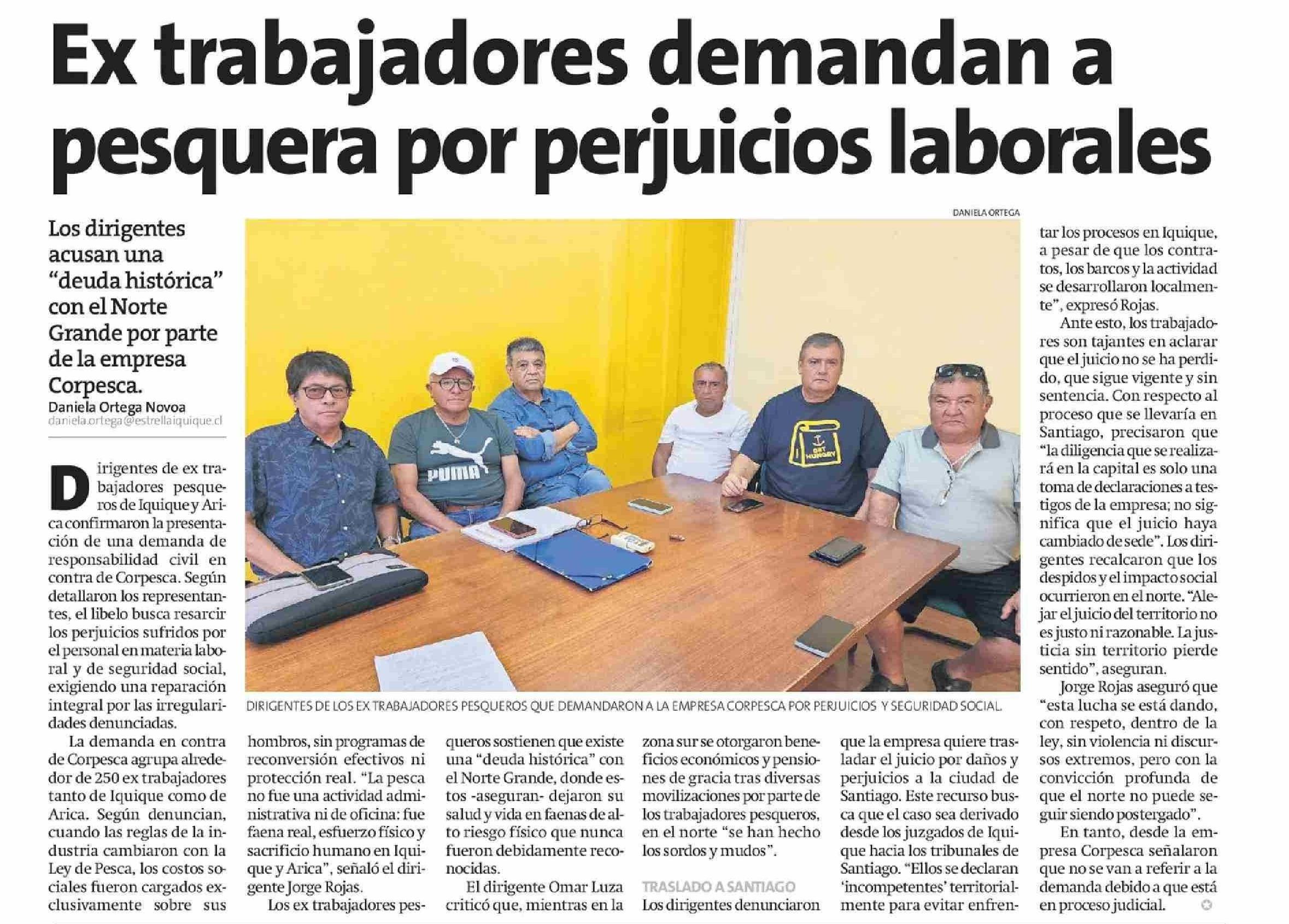 Ex trabajadores demandan a pesquera por perjuicios laborales 13-02-2026 La Estrella de Iquique |