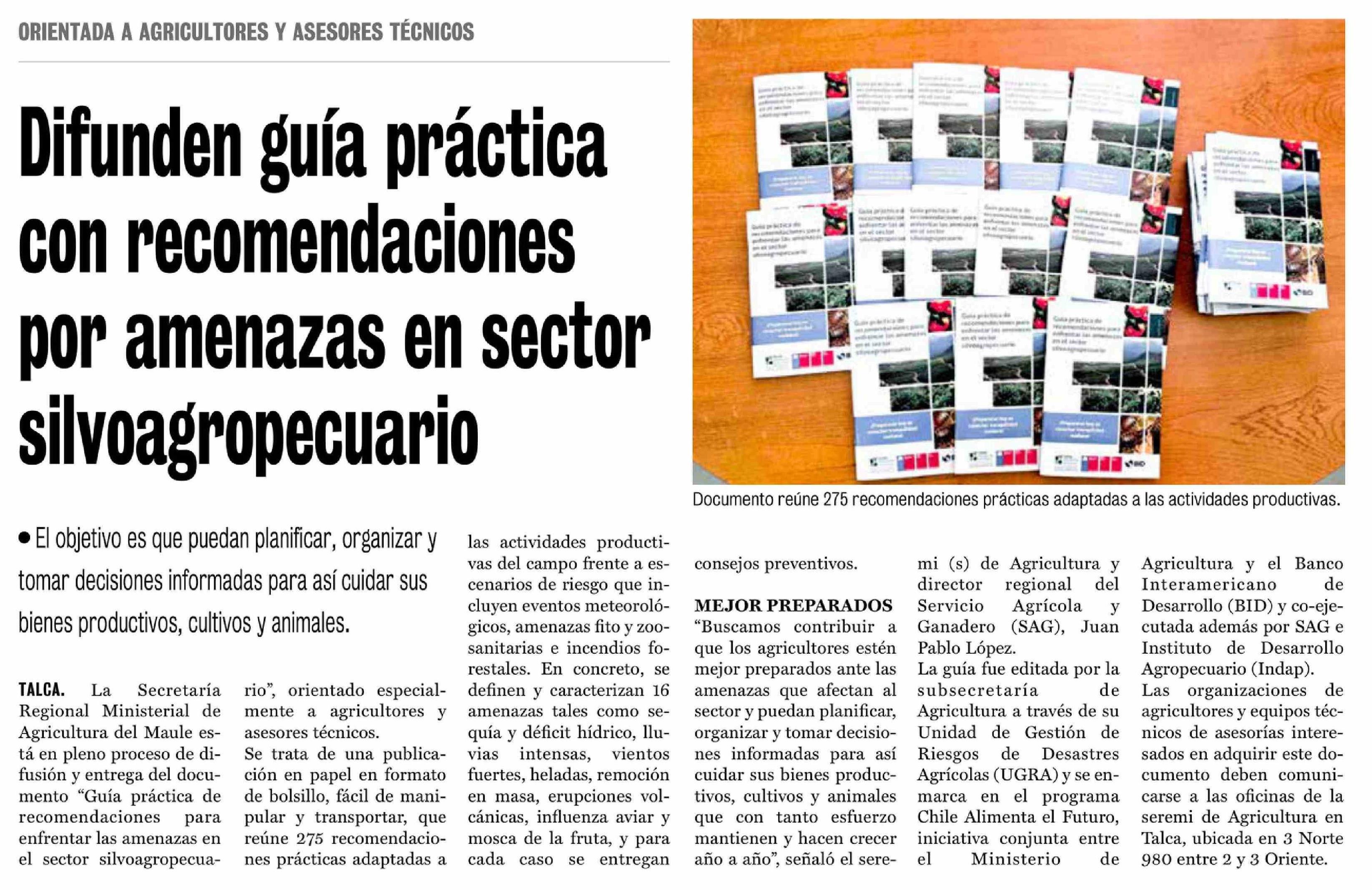 Difunden guía práctica con recomendaciones por amenazas en sector silvoagropecuario 20-02-2026 La Prensa de Curicó |