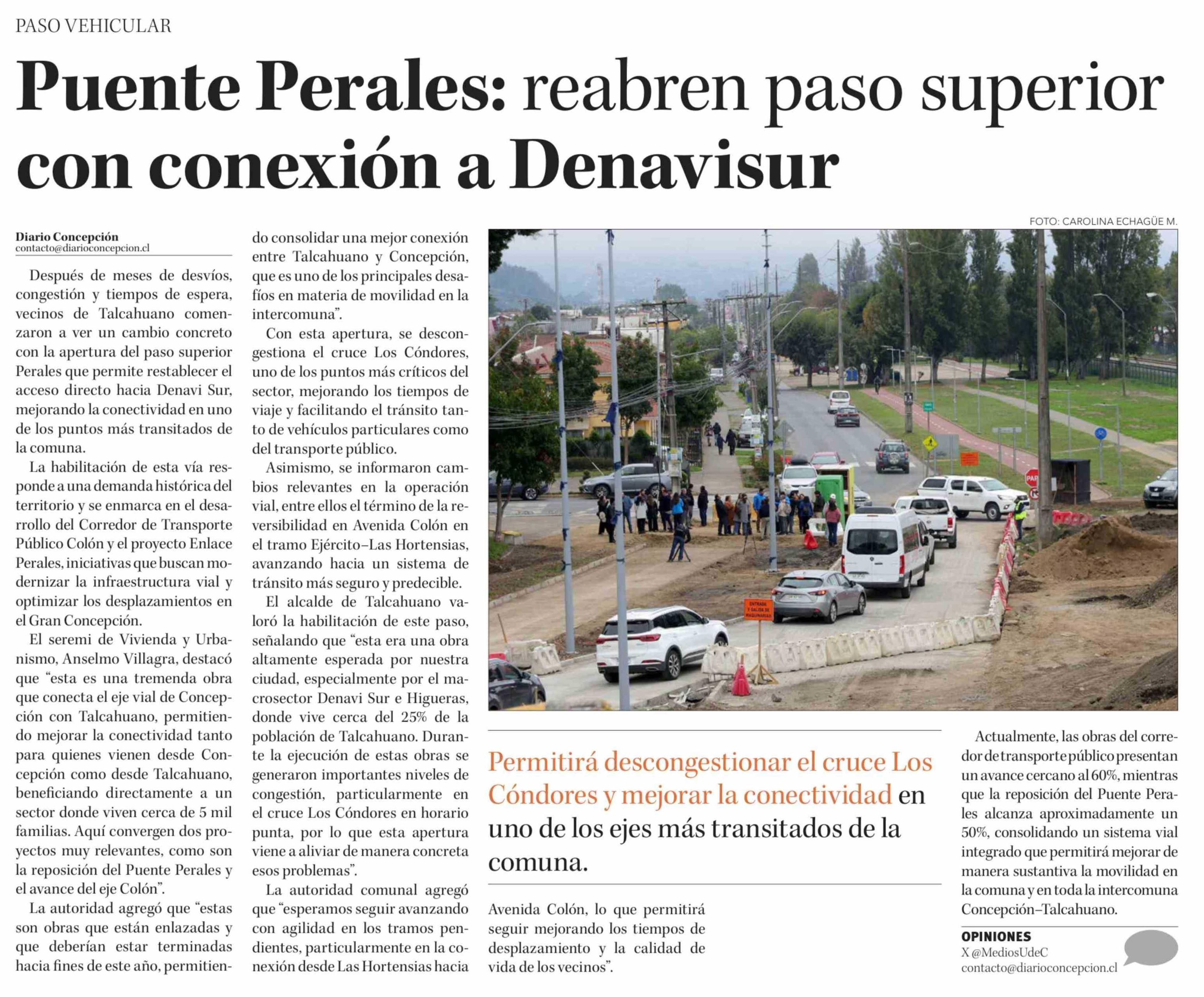 Puente Perales: reabren paso superior con conexión a Denavisur 11-04-2026 Diario Concepción |