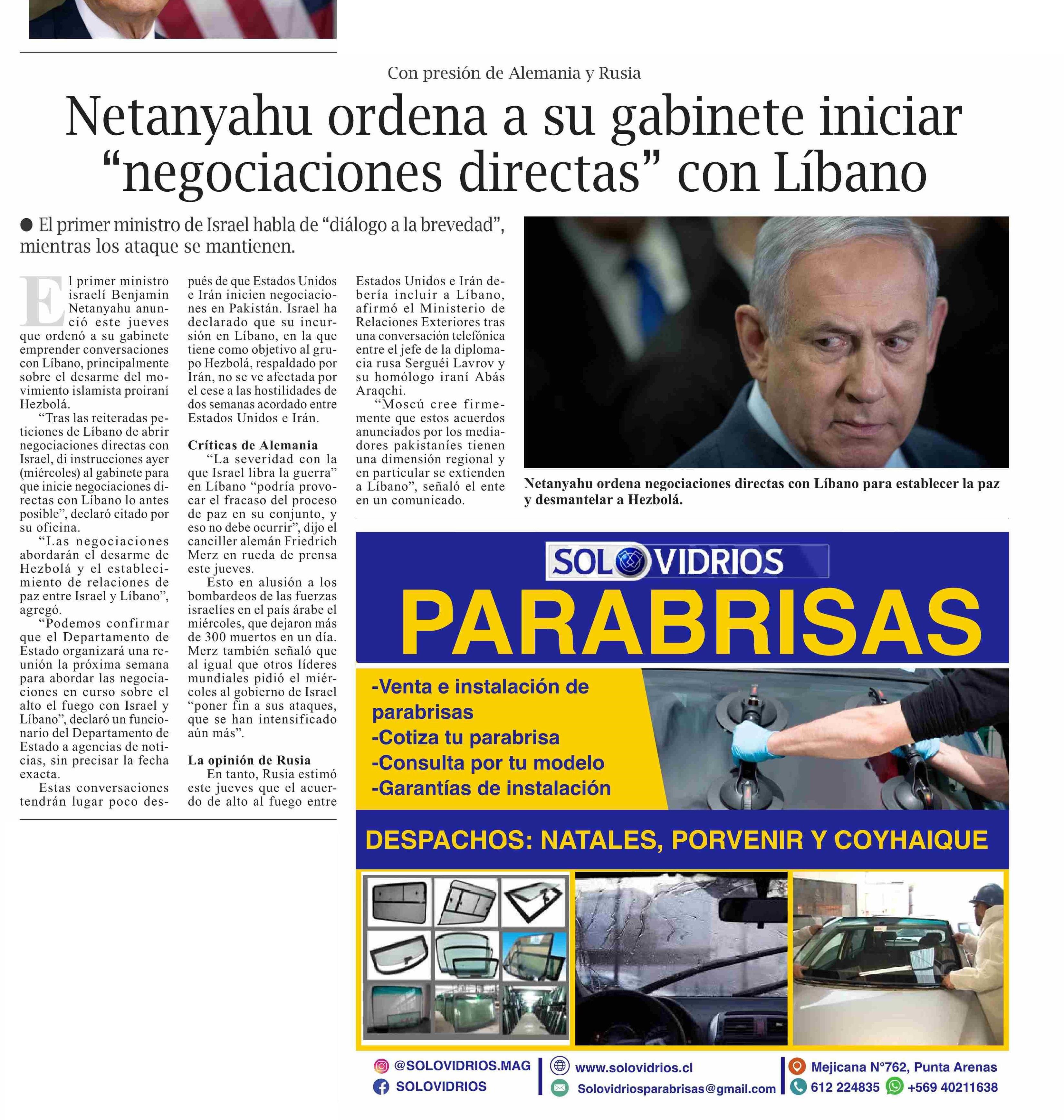 Netanyahu ordena a su gabinete iniciar “negociaciones directas” con Líbano 10-04-2026 El Pingüino |