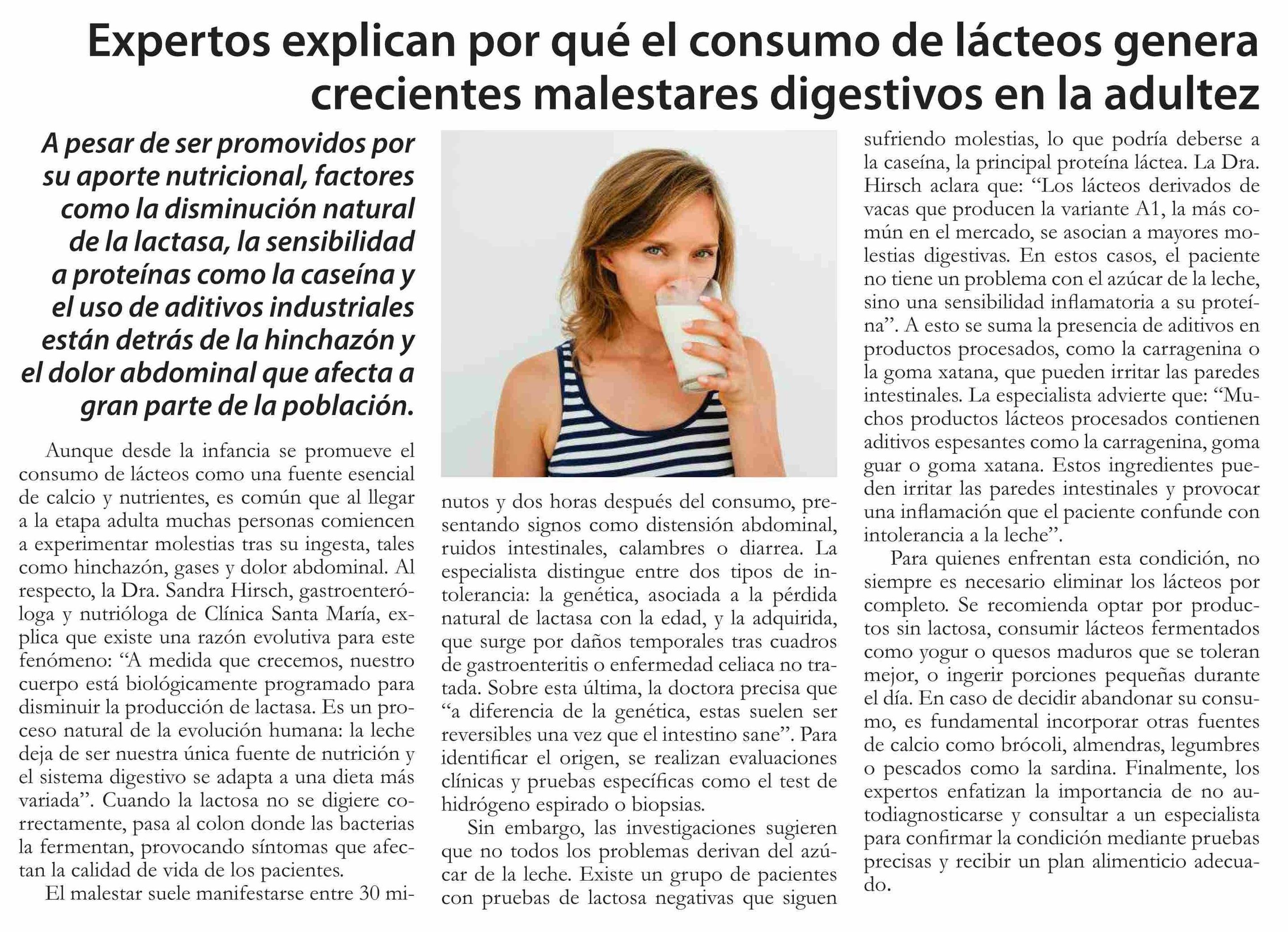 Expertos explican por qué el consumo de lácteos genera crecientes malestares digestivos en la adultez 21-01-2026 El Divisadero |