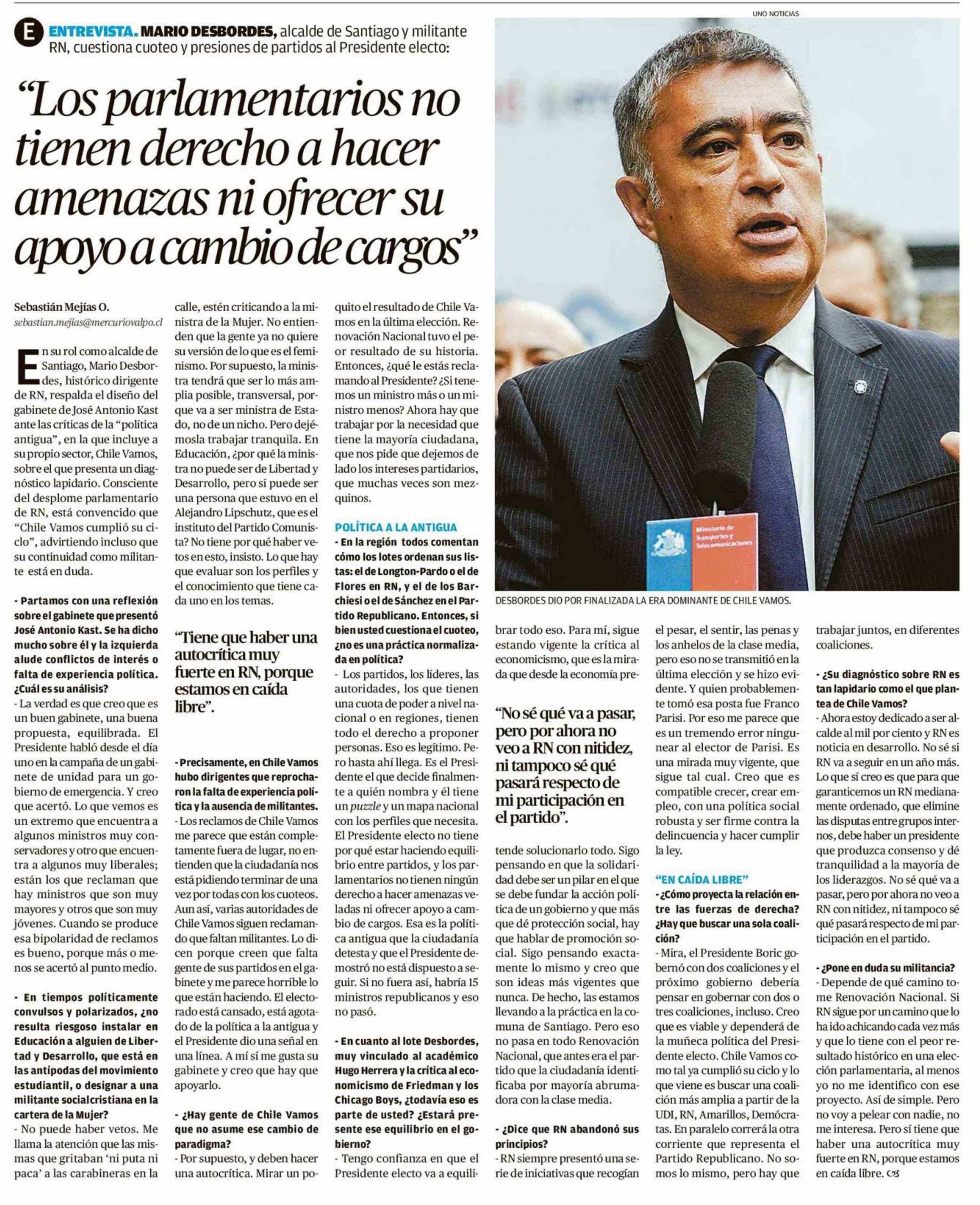 "Los parlamentarios no tienen derecho a hacer amenazas ni ofrecer su apoyo a cambio de cargos" 25-01-2026 Crónica de Chillán |