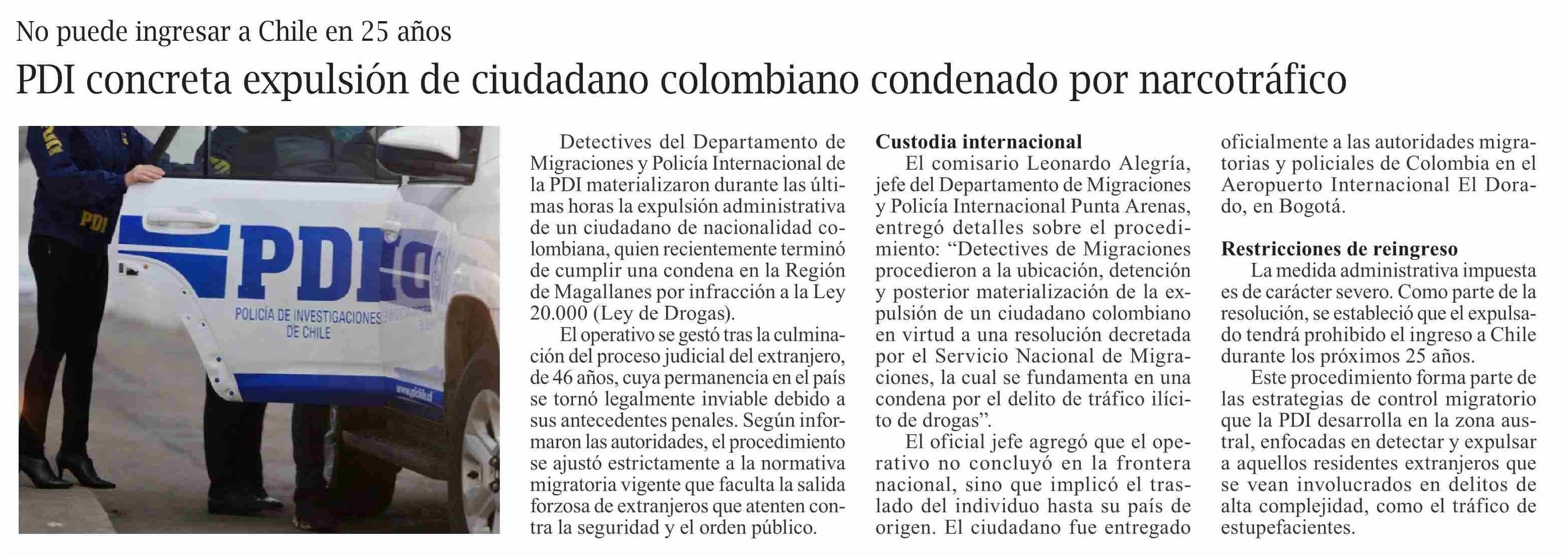 PDI concreta expulsión de ciudadano colombiano condenado por narcotráfico 03-04-2026 El Pingüino |
