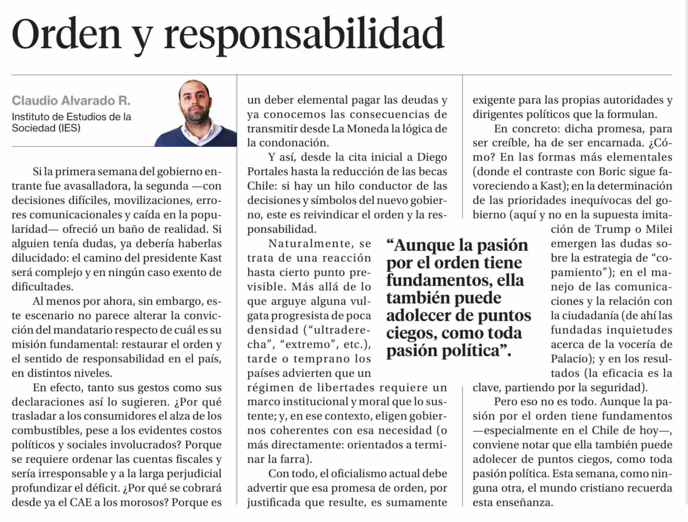Columnas de Opinión: Orden y responsabilidad
