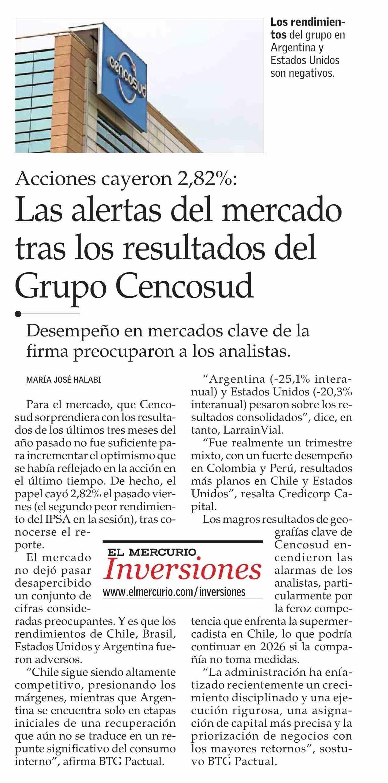 Título: Las alertas del mercado tras los resultados del Grupo Cencosud