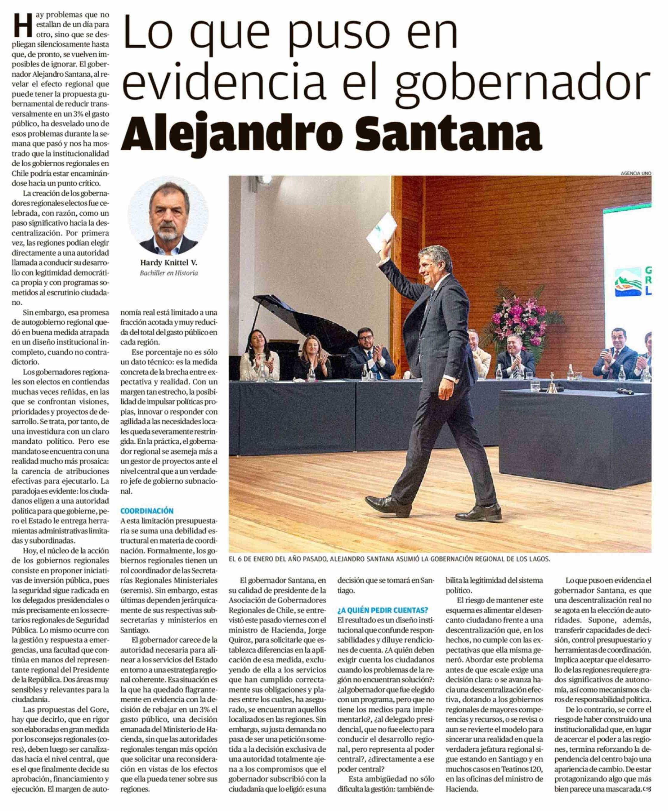 Columnas de Opinión: Lo que puso en evidencia el gobernador Alejandro Santana 22-03-2026 El Llanquihue |