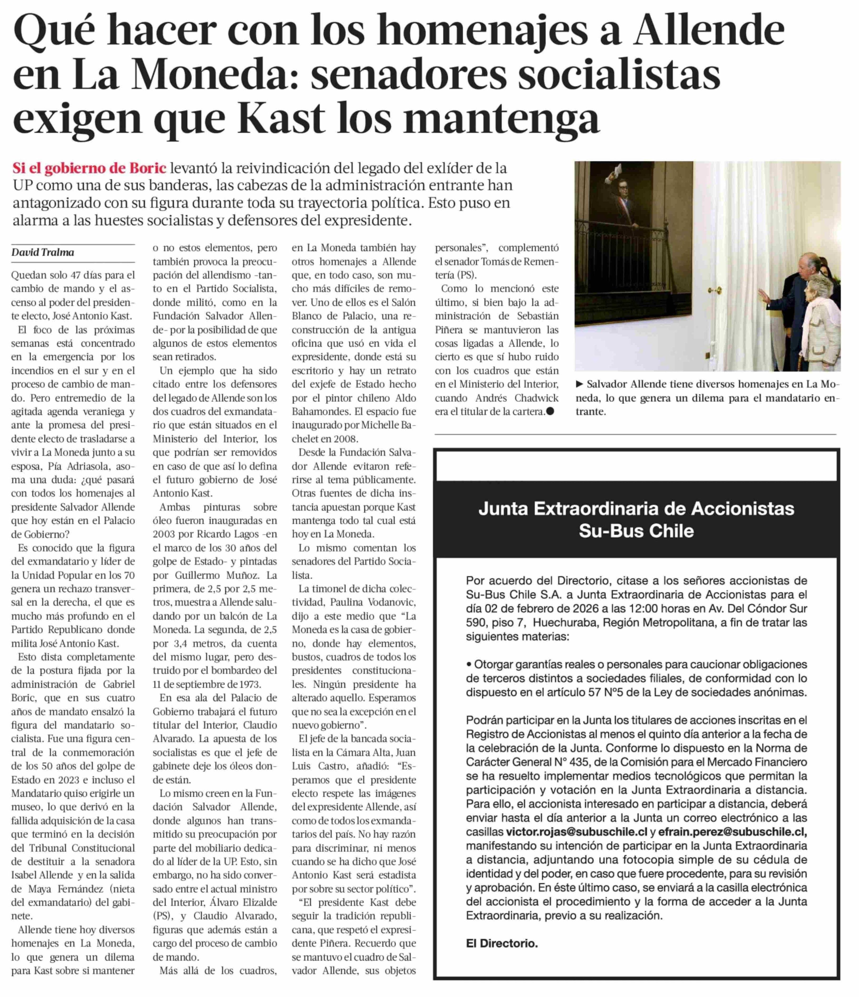 Título: Qué hacer con los homenajes a Allende en La Moneda: senadores socialistas exigen que Kast los mantenga