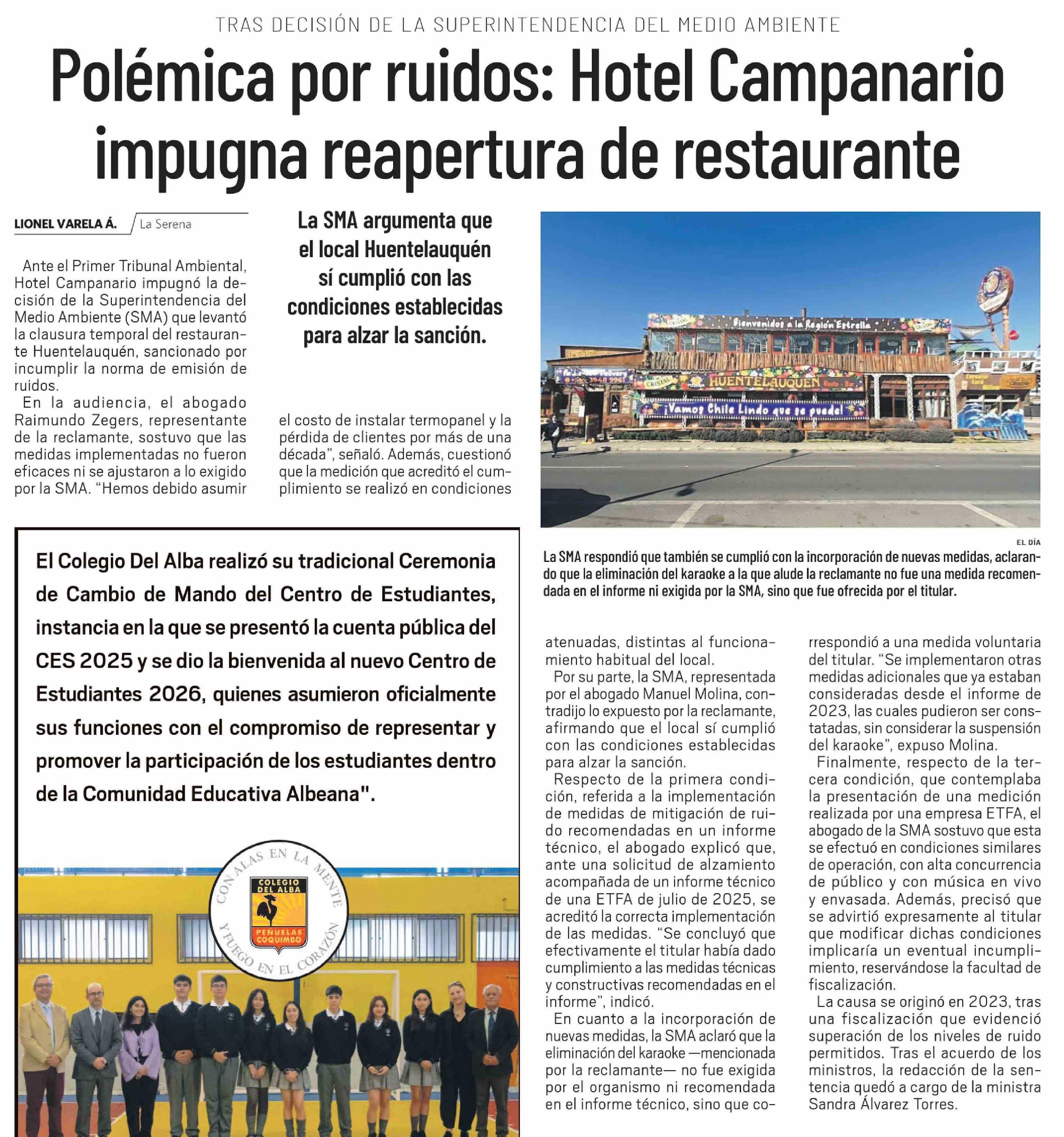 Polémica por ruidos: Hotel Campanario impugna reapertura de restaurante 02-04-2026 El Día |