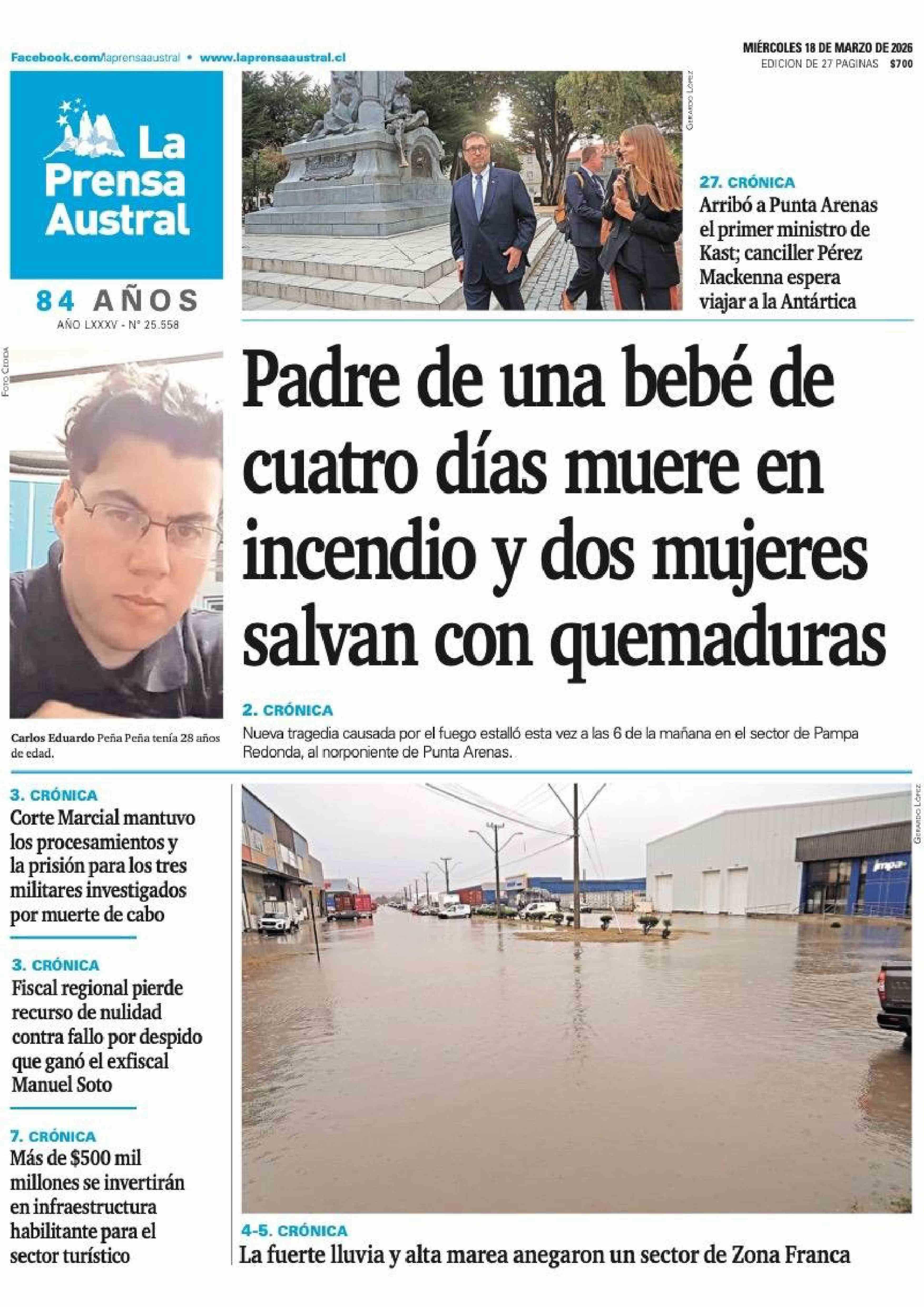PORTADA LA PRENSA AUSTRAL CHILE 18-03-2026 La Prensa Austral |