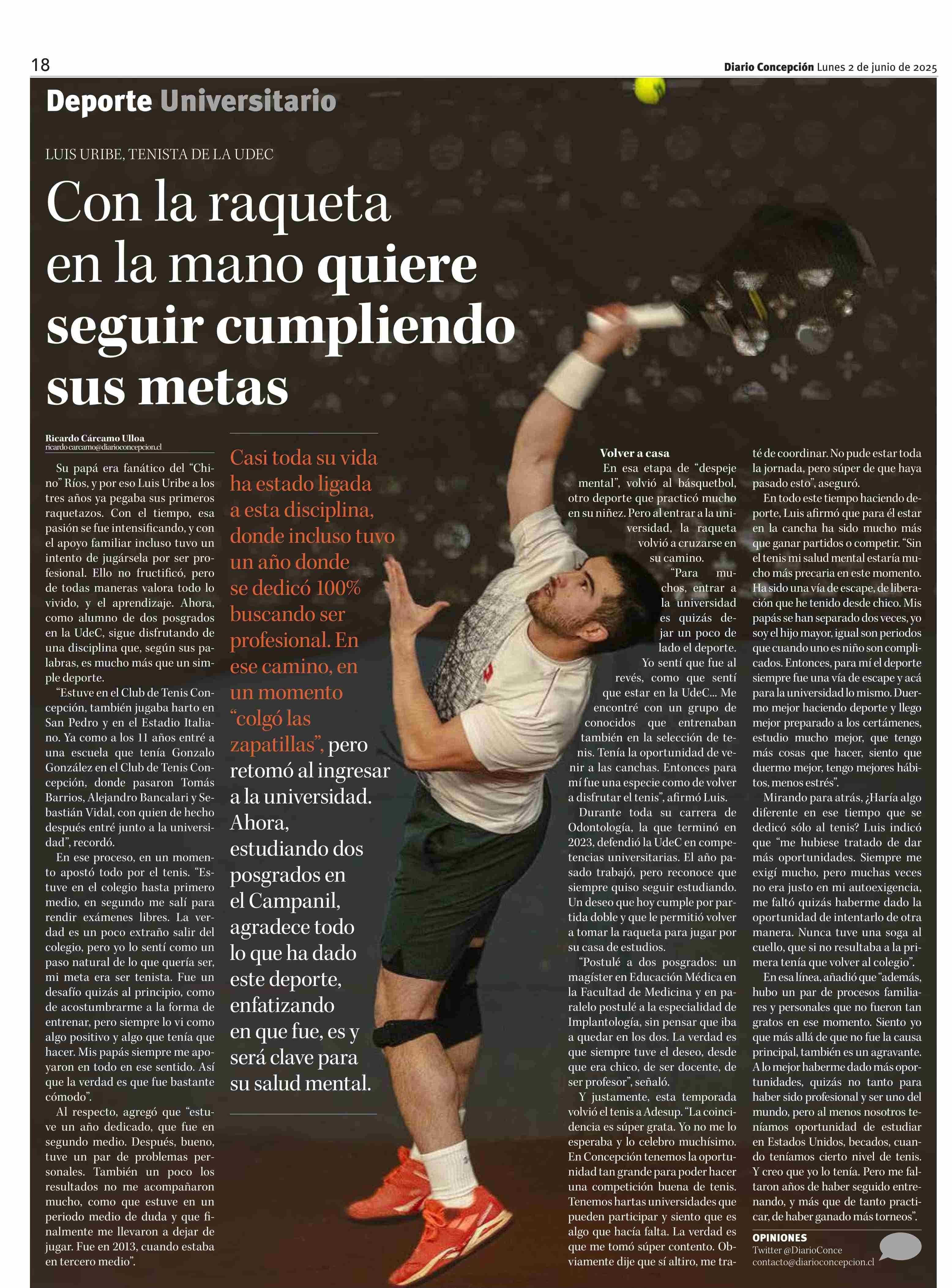 Con la raqueta en la mano quiere seguir cumpliendo sus melflas 02-06-2025 Diario Concepción |