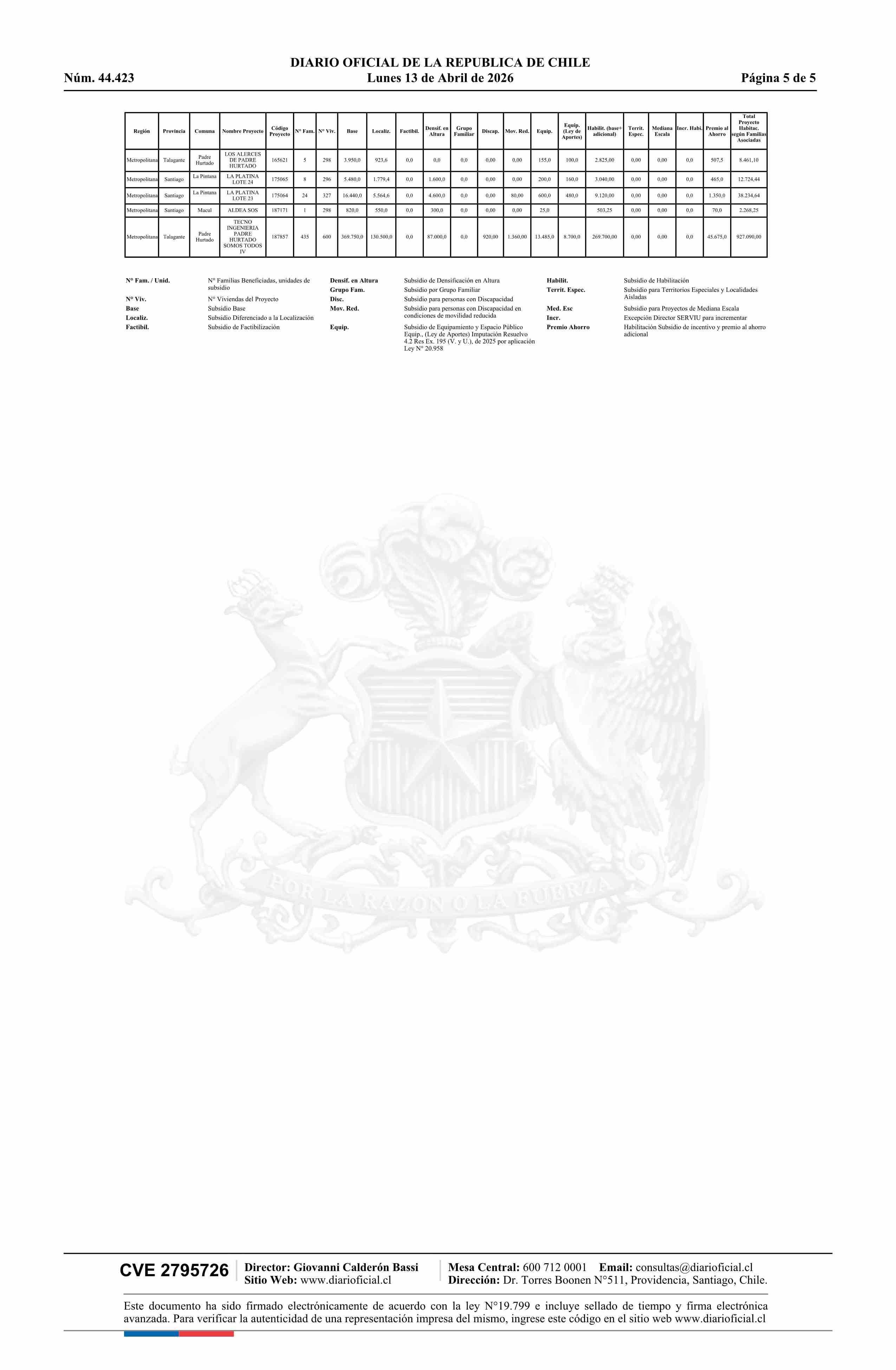 Fuente: Diario Oficial Edición Electrónica (Diario Oficial de Chile - 2 Normas Particulares) Página(s): 9-13