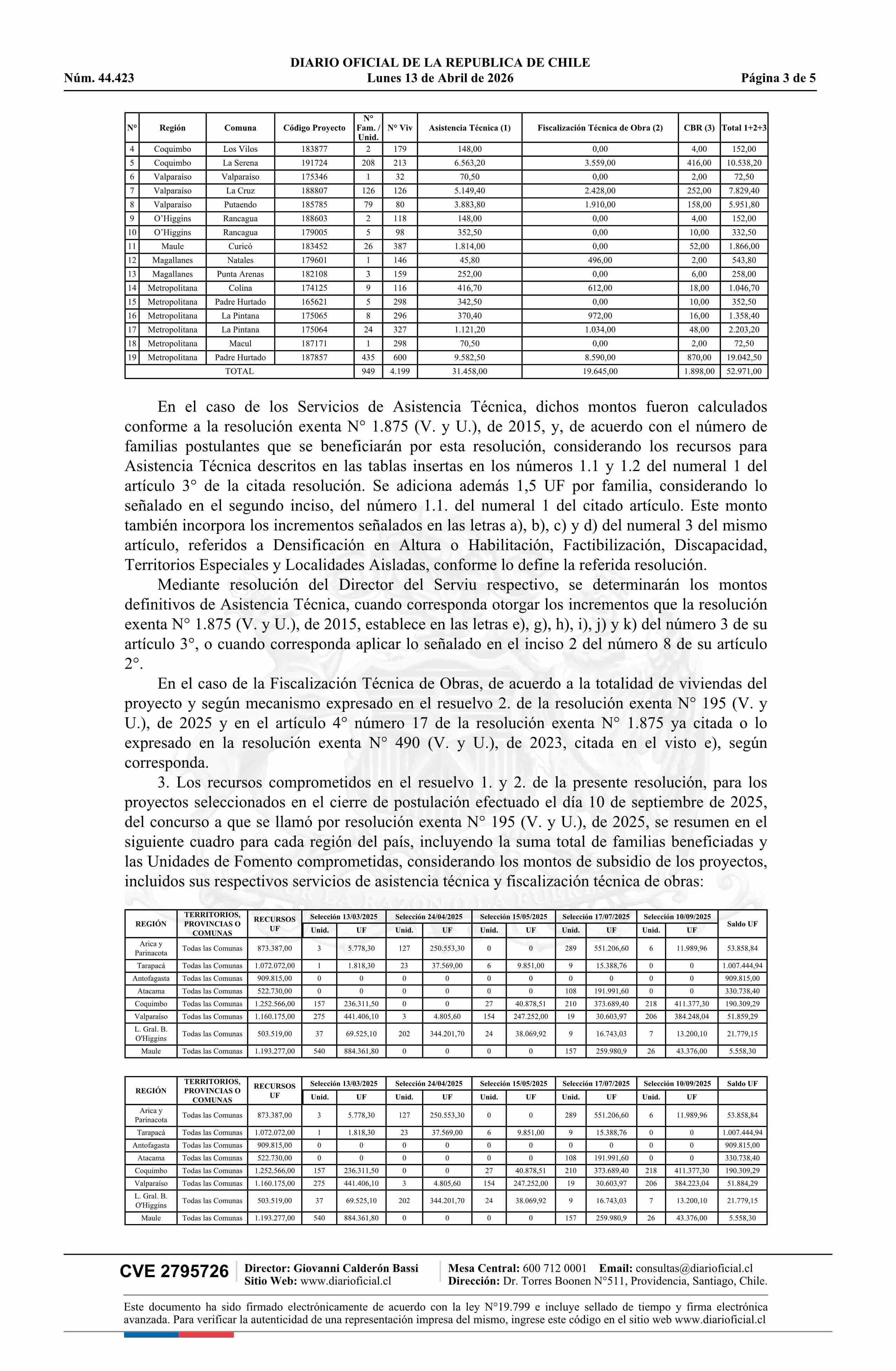 Resolución exenta número 2.068, de 2025.- Aprueba nómina de proyectos, calificados en el cierre del 10 de septiembre de 2025 del llamado dispuesto por la resolución N° 195 exenta, de 2025, que determinó el proceso de selección en condiciones especiales para el otorgamiento de subsidios del Programa
