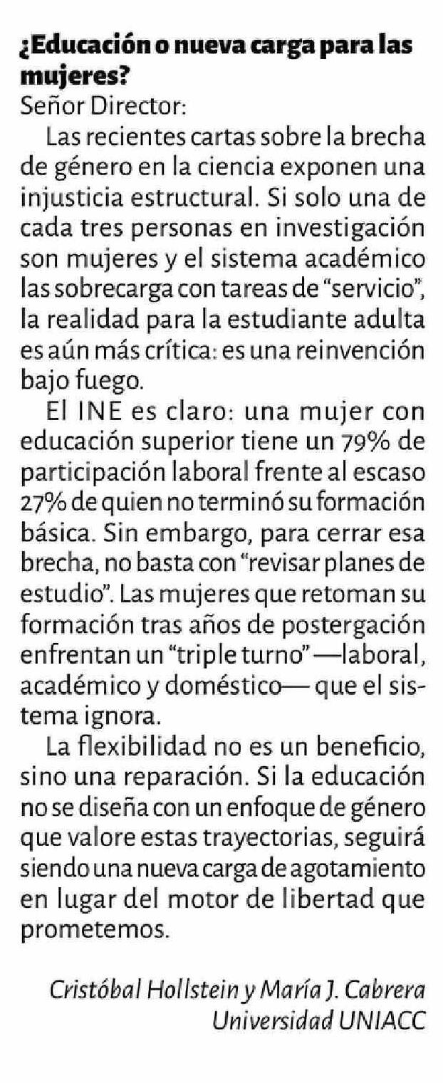 CARTAS: ¿Educación o nueva carga para las mujeres?