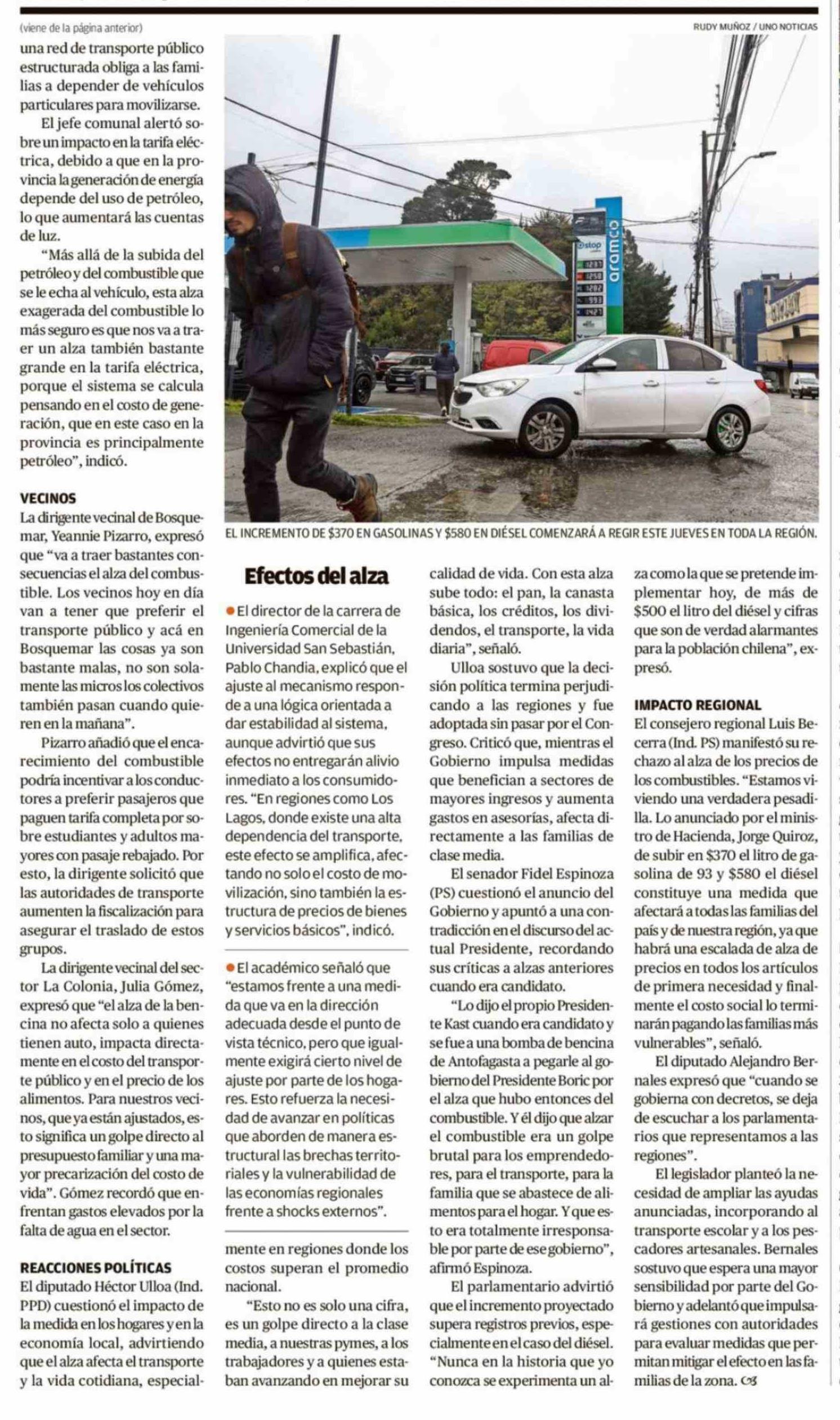 Título: El litro de combustible superará los $1.800 en zonas extremas de la región