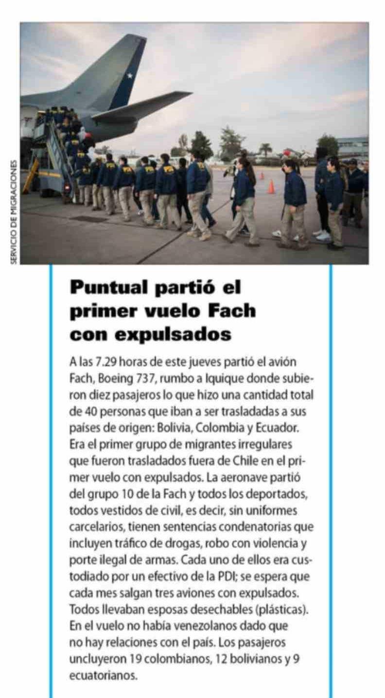 Título: Puntual partió el primer vuelo Fach con expulsados