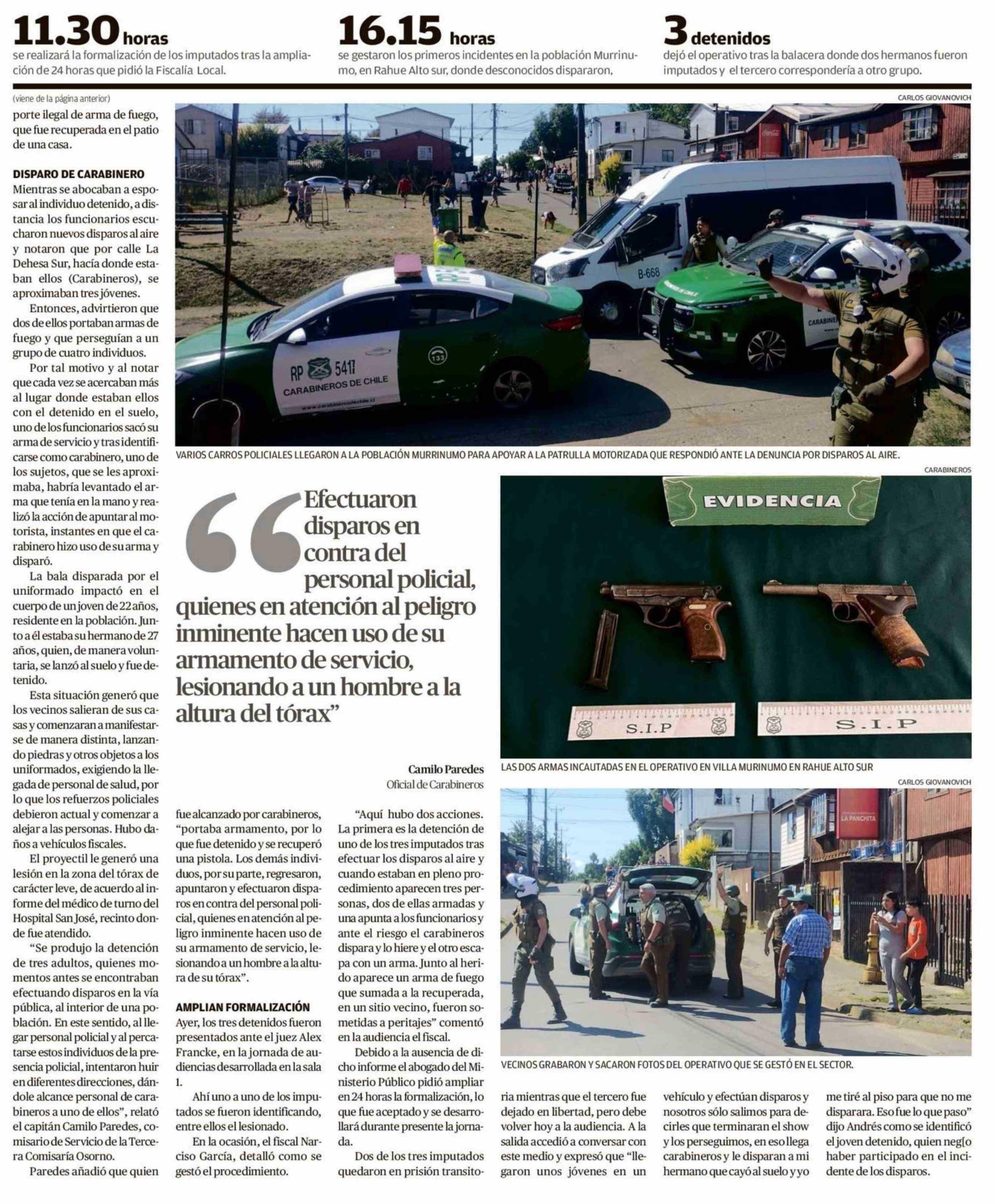 Carabineros dispara a joven en medio de incidente en Rahue Alto 23-01-2026 El Austral de Osorno |
