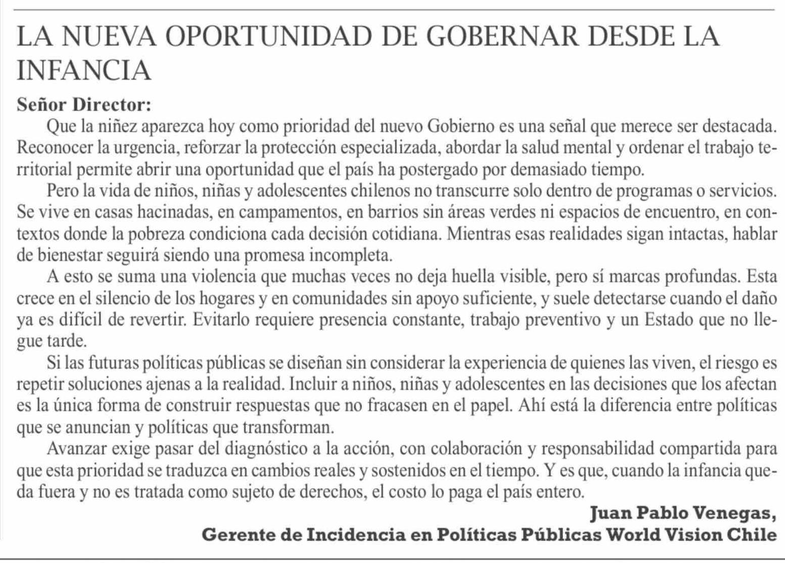 CARTAS: LA NUEVA OPORTUNIDAD DE GOBERNAR DESDE LA INFANCIA