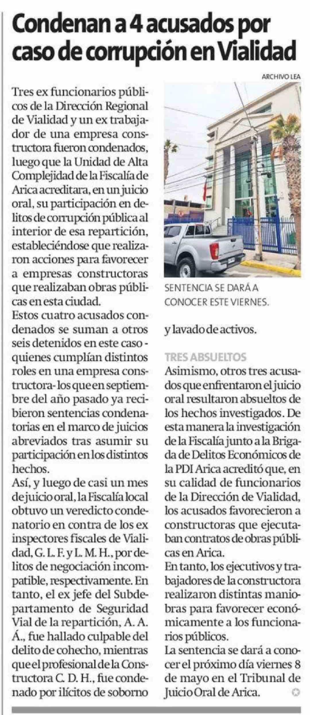 Condenan a 4 acusados por caso de corrupción en Vialidad 22-04-2026 La Estrella de Arica |
