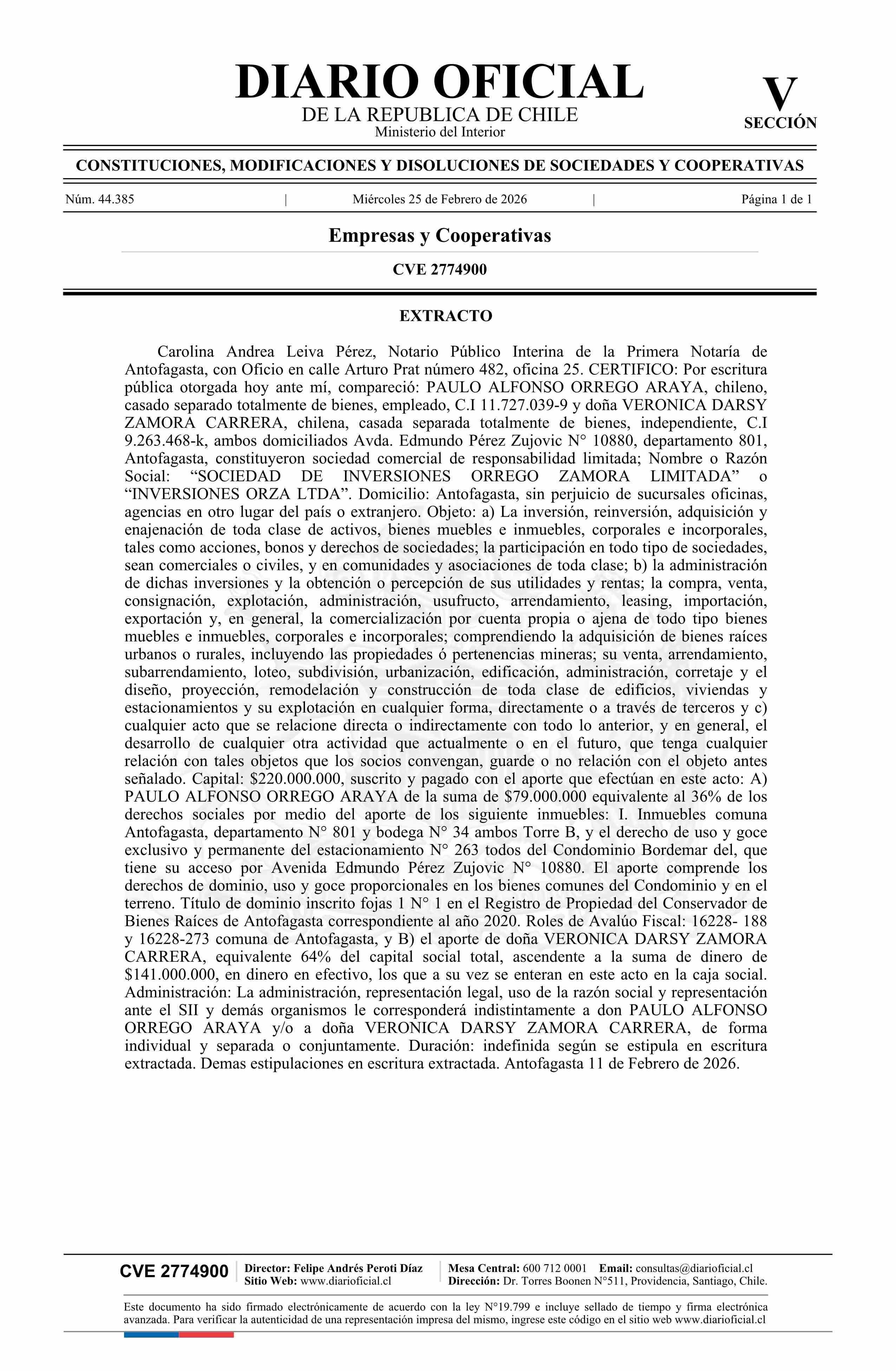 Título: SOCIEDAD DE INVERSIONES ORREGO ZAMORA LIMITADA