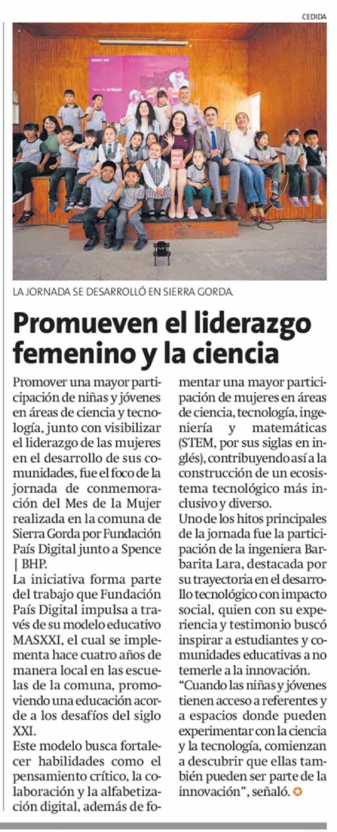 Promueven el liderazgo femenino y la ciencia 19-03-2026 La Estrella de Antofagasta |