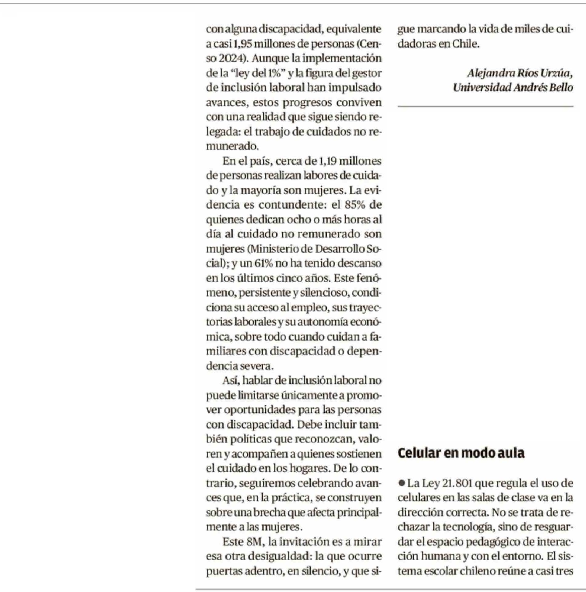 CARTAS: La brecha invisible del 8M 07-03-2026 El Austral de Osorno |