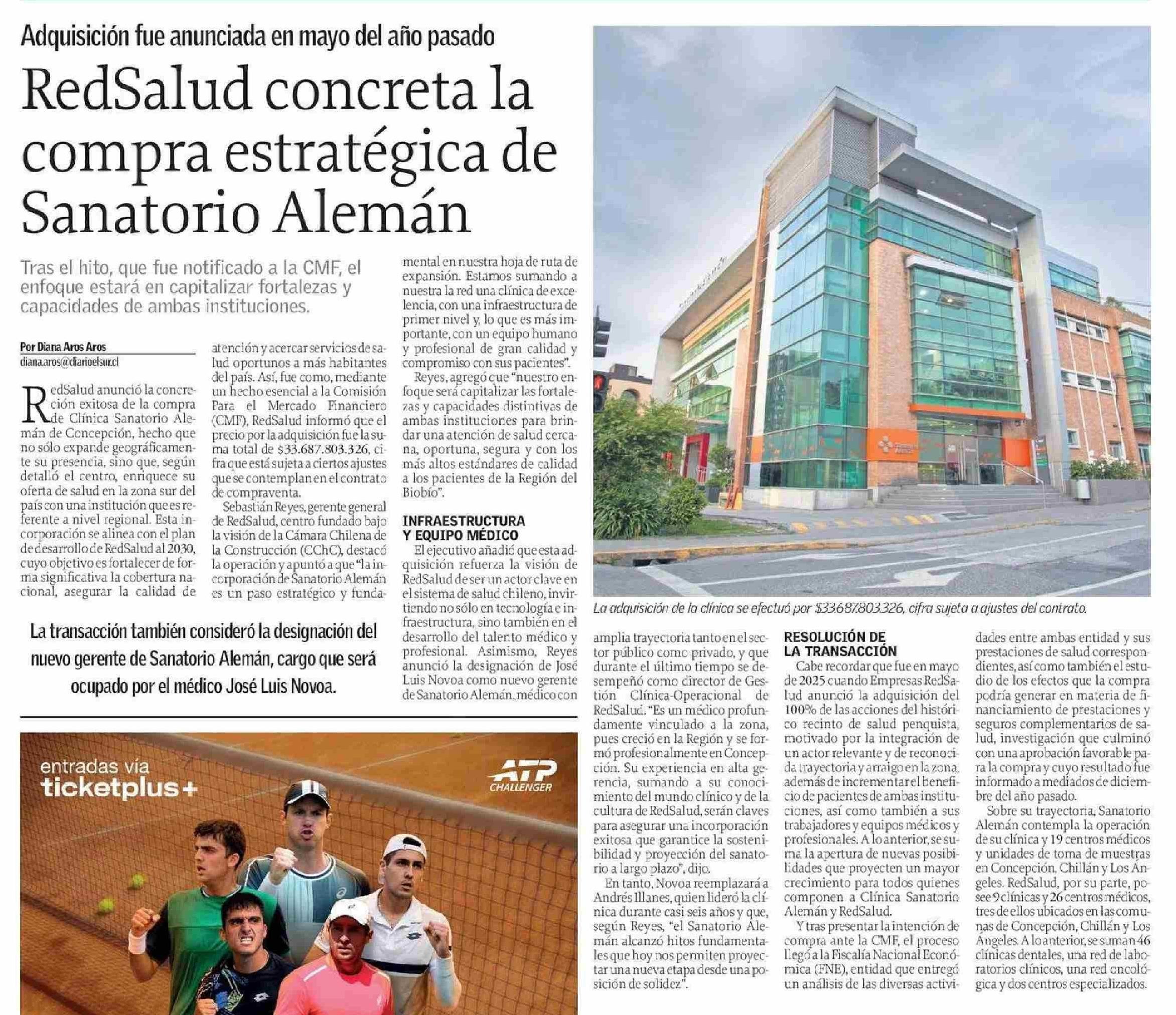 Título: RedSalud concreta la compra estratégica de Sanatorio Alemán