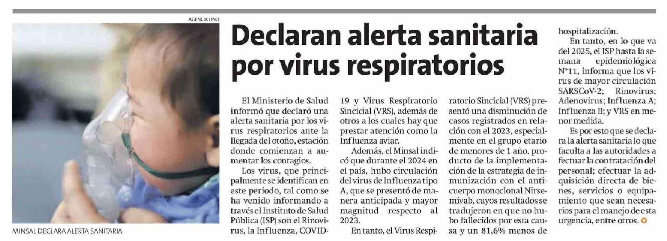 | Título: | Declaran alerta sanitaria por virus respiratorios |
